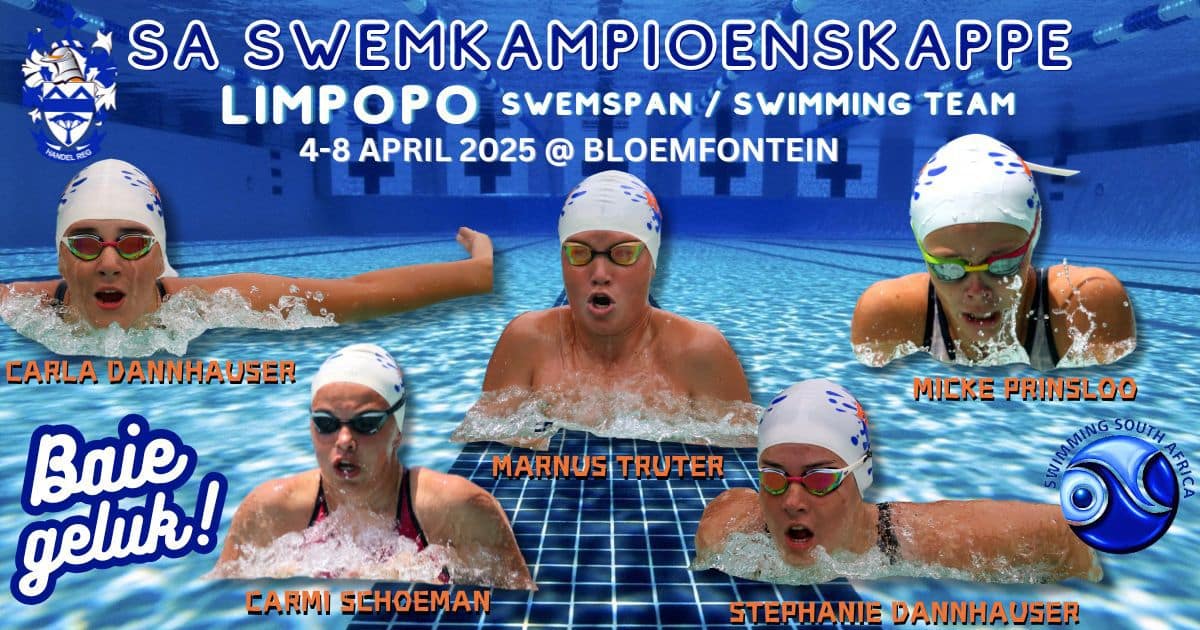 Baie geluk aan die volgende swemmers van Hoërskool Piet Potgieter wat gekies was om die Limpopo Provinsie te verteenwoordig het by die SA Skole Swemkampioenskappe in Bloemfontein vanaf.