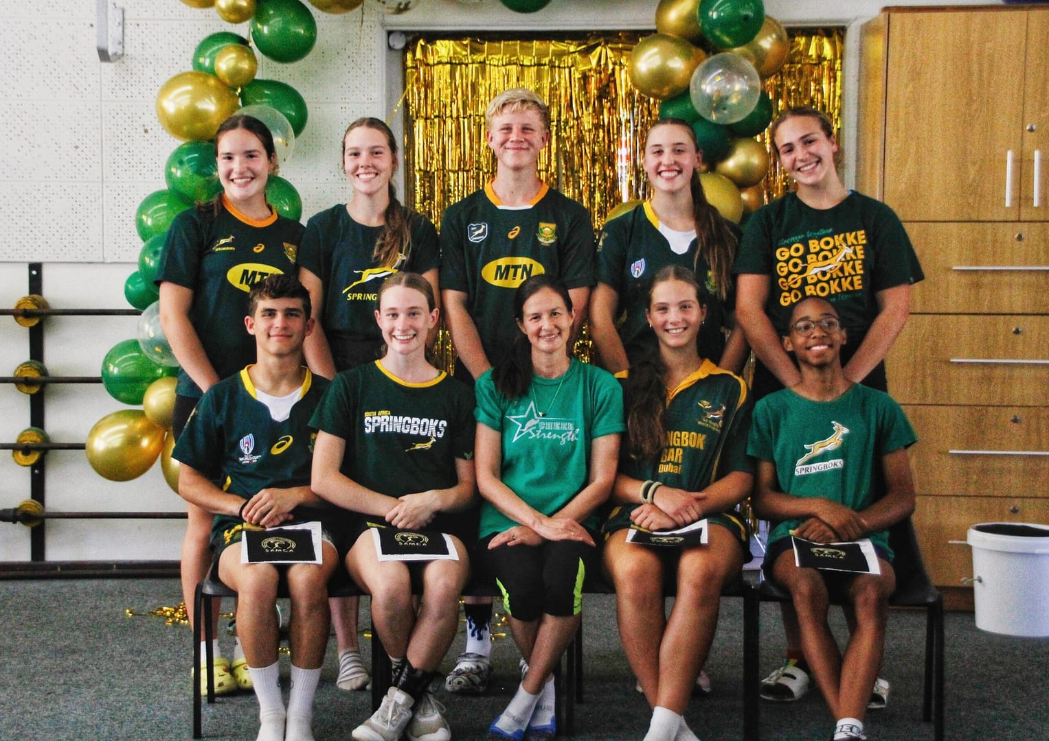 V.l.n.r: Agter: Sophia Eksteen, Mary-Anné Basson, Schalk Botes, Odelia Krige, Daniella Smith Voor: Mehan Keller, Elrike Nel, Amanda Bowden, Zara Fourie, Luca Dell-Coetzee
