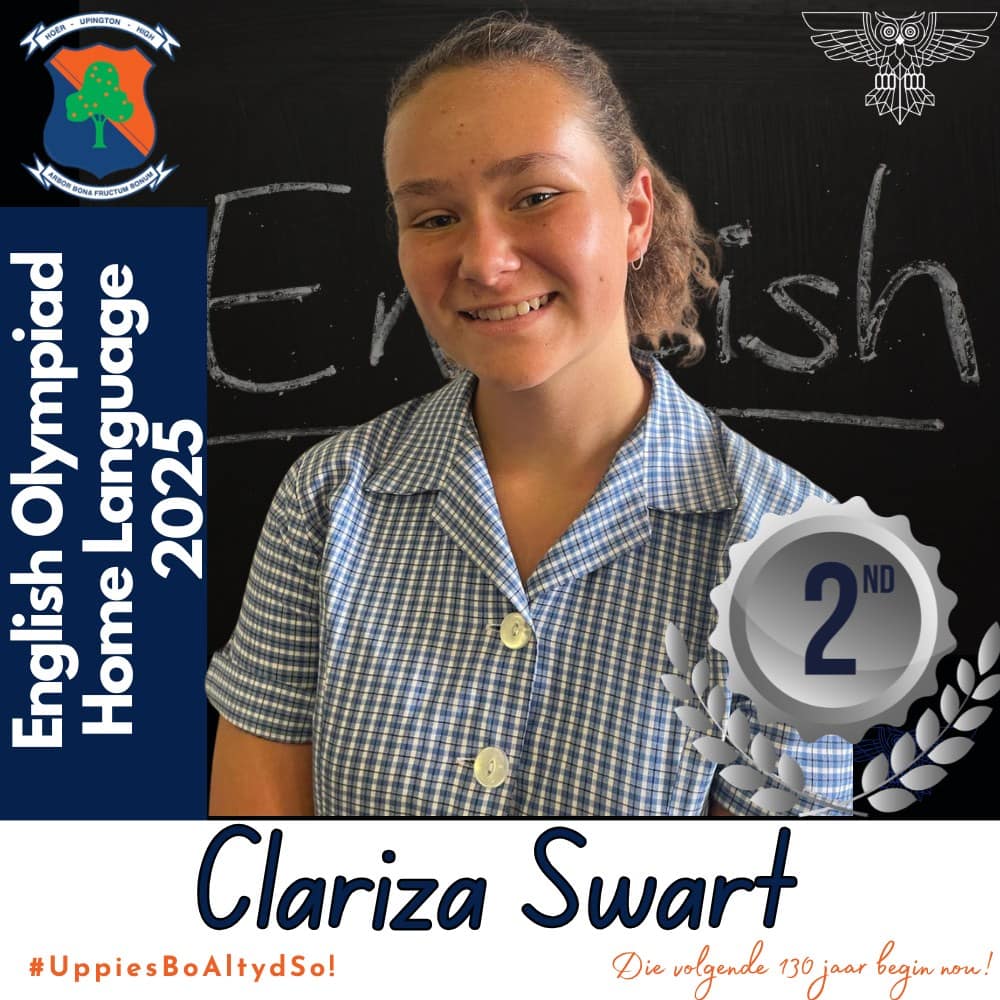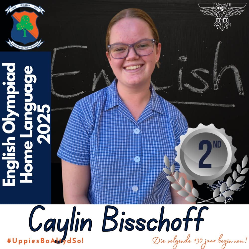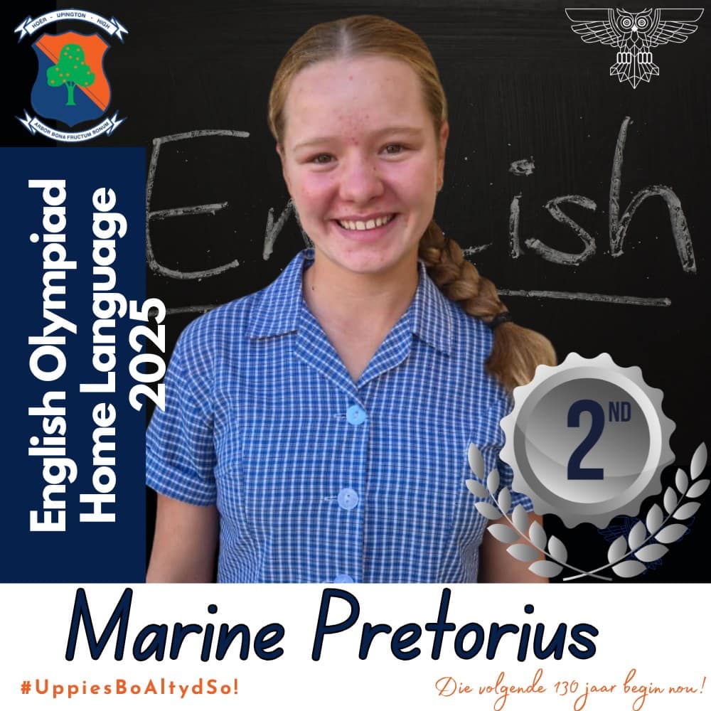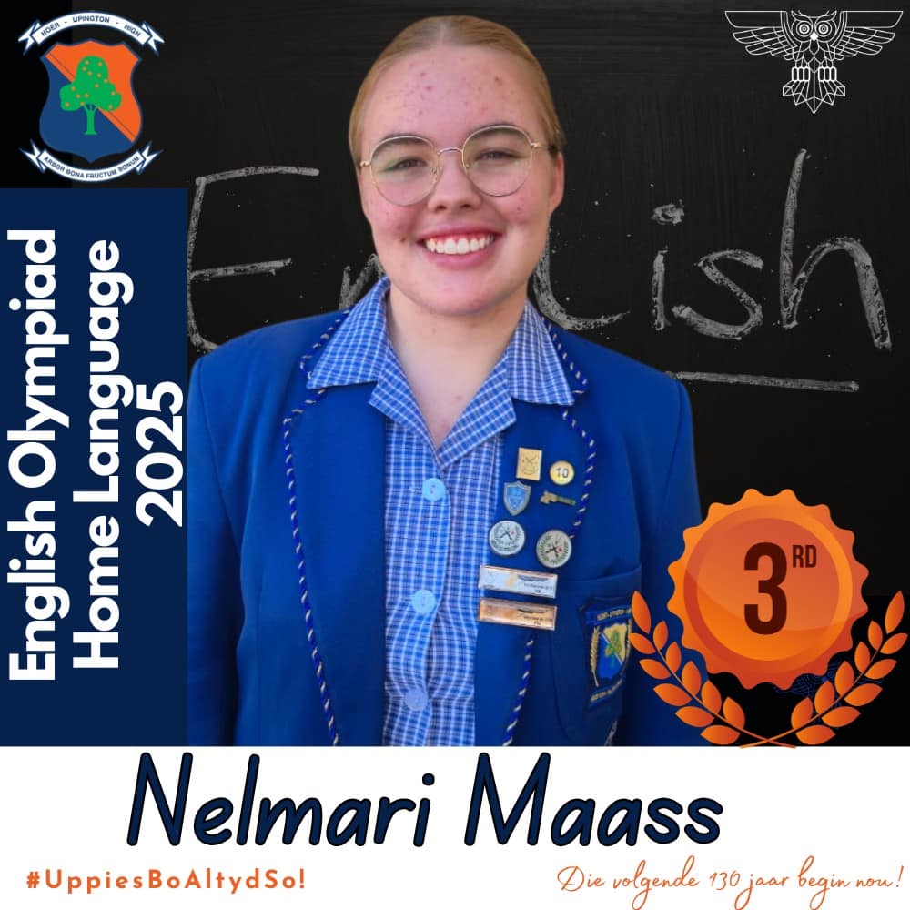 Hoërskool Upington wil graag ons leerders hartlik gelukwens met hul deelname aan die 2025 Engelse Olimpiade. Deelname aan hierdie gesogte kompetisie was ’n betekenisvolle prestasie vir almal wat betrokke was. Hierdie leerders se bereidwilligheid om hulself buite die klaskamer uit te daag, getuig van hul toewyding tot akademiese groei en uitnemendheid.