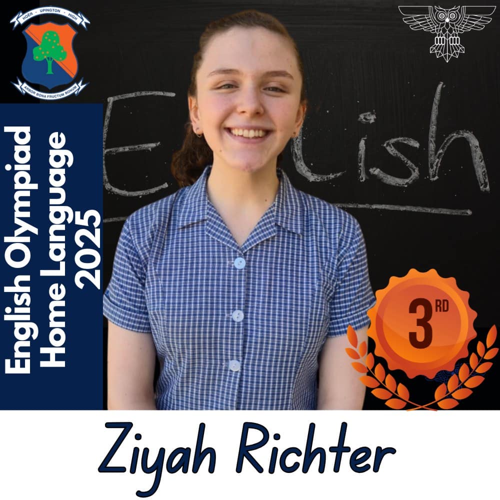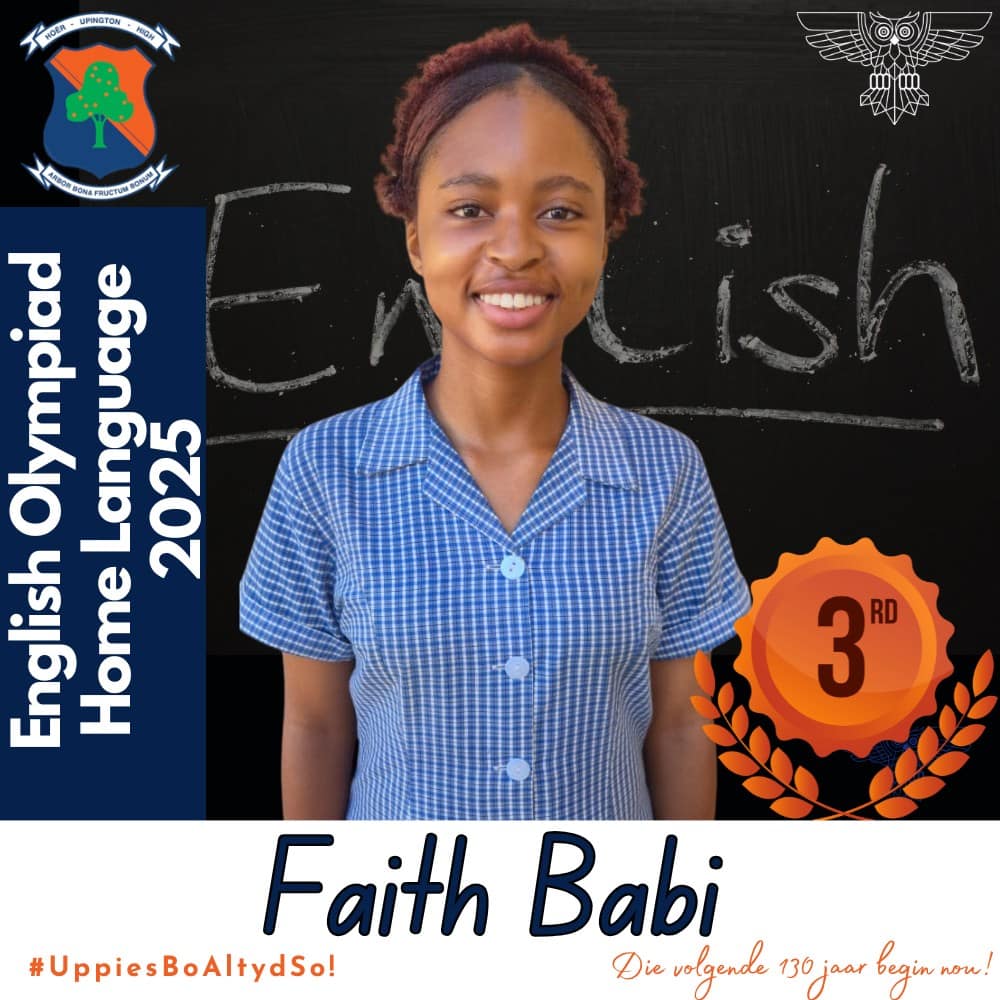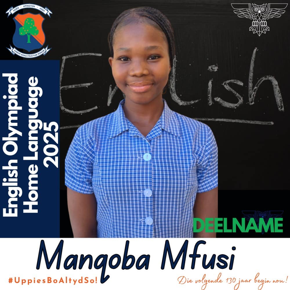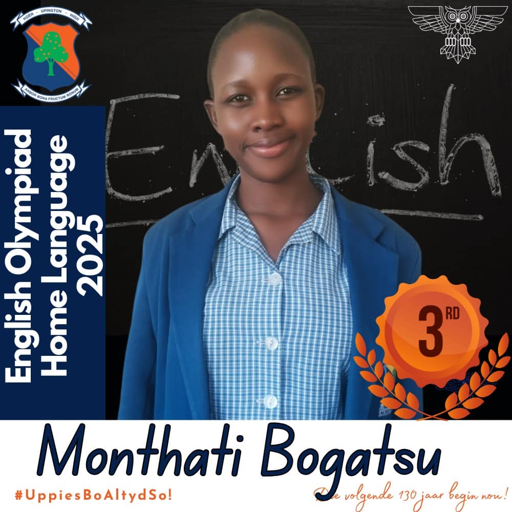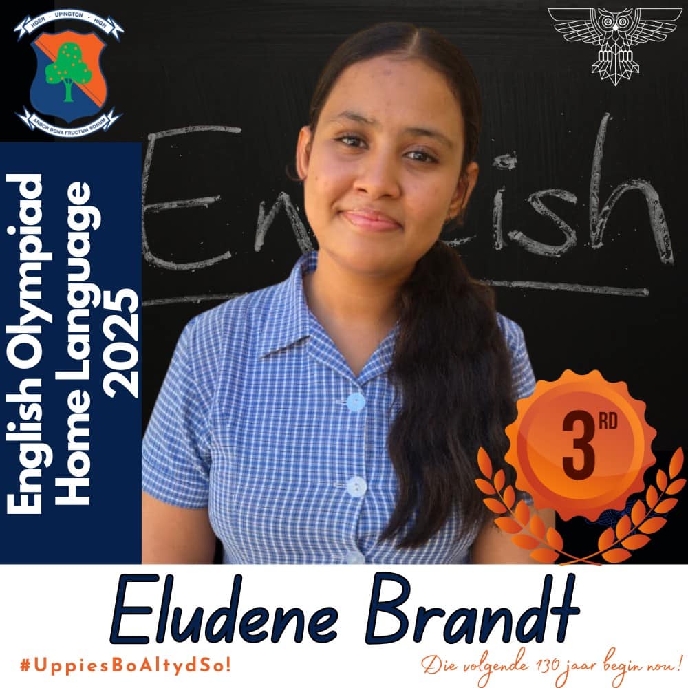 Hoërskool Upington wil graag ons leerders hartlik gelukwens met hul deelname aan die 2025 Engelse Olimpiade. Deelname aan hierdie gesogte kompetisie was ’n betekenisvolle prestasie vir almal wat betrokke was. Hierdie leerders se bereidwilligheid om hulself buite die klaskamer uit te daag, getuig van hul toewyding tot akademiese groei en uitnemendheid.