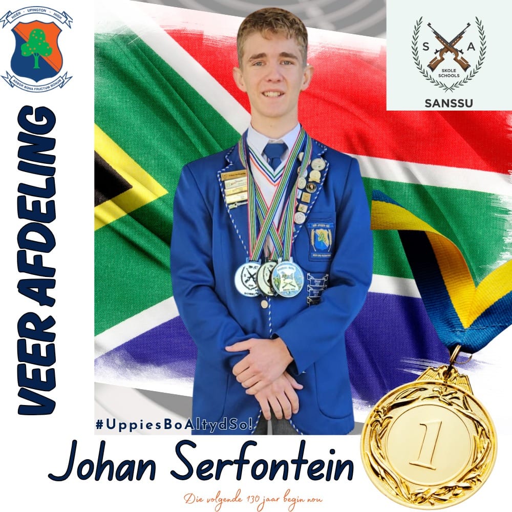 As verdere erkenning is hy ook gekies om goue SANSSU-klere (groen en goud) te ontvang – ’n besondere prestasie! Johan is ook aangewys as Hoërskool Upington én PVM se Sportman van die Week – ’n welverdiende eer! Ons is ongelooflik trots op jou, Johan. Hou aan mik vir die hoogste!