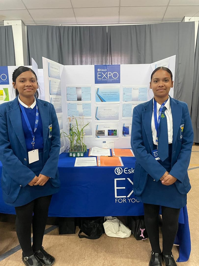 Welgedaan aan ons Uppie tweeling. Ciara en Keara Strauss, graad 9-leerders, het onlangs deelgeneem aan die ‘Eskom Expo for Young Scientists’ in Kathu met hul projek oor ‘Dormancy vs Germination using Light Frequency’.