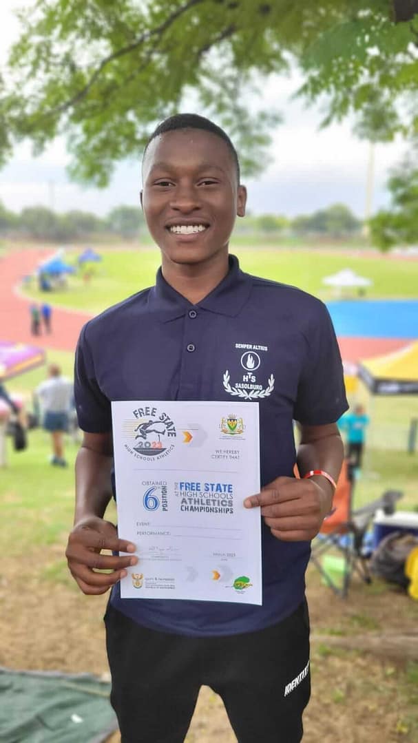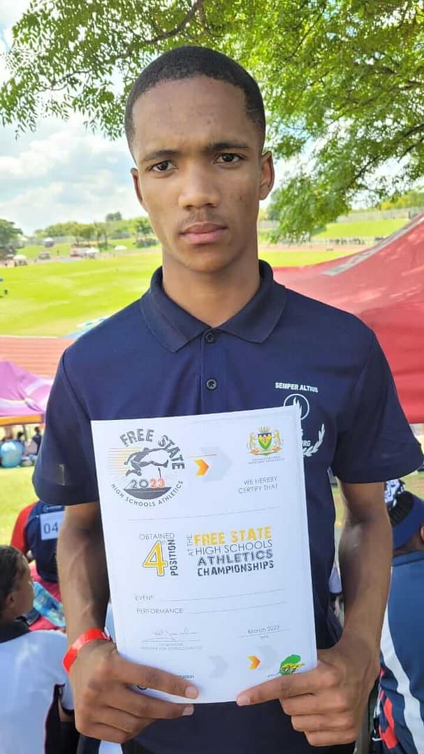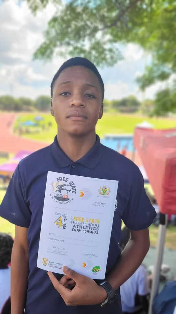 - A: Lerato Mofokeng 5th 100m hurdles boys 15