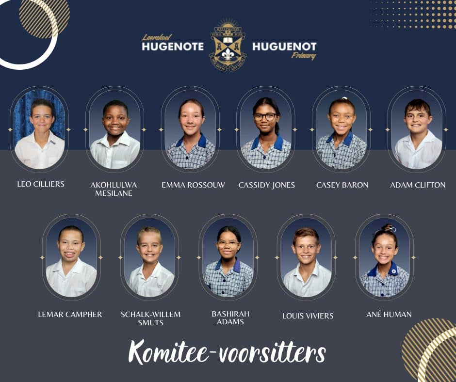Baie geluk aan die leerders van Hugenote Laerskool wat verkies is as voorsitters van die diensrade vir die eerste kwartaal! Mag elkeen van hulle hierdie verantwoordelikheid met trots en passie aanpak. Ons glo dat hulle, soos ware Hugenoters, met integriteit en entoesiasme sal lei. Goeie leiers inspireer ander om ook ’n verskil te maak. Ons sien uit om die impak van hul leierskap te sien!