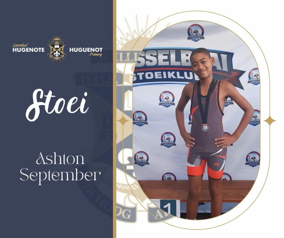 Hugenote Laerskool is baie trots op Ashton September (Gr. 6) wat as deel van die Paarl Warriors Wrestling Klub in George, die skool met trots verteenwoordig het. Ashton het hom uitstekend van sy taak gekwyt en deur harde werk, deursettingsvermoë en sportmangees ’n algehele 3de plek in sy ouderdomsgroep (o.13) behaal.