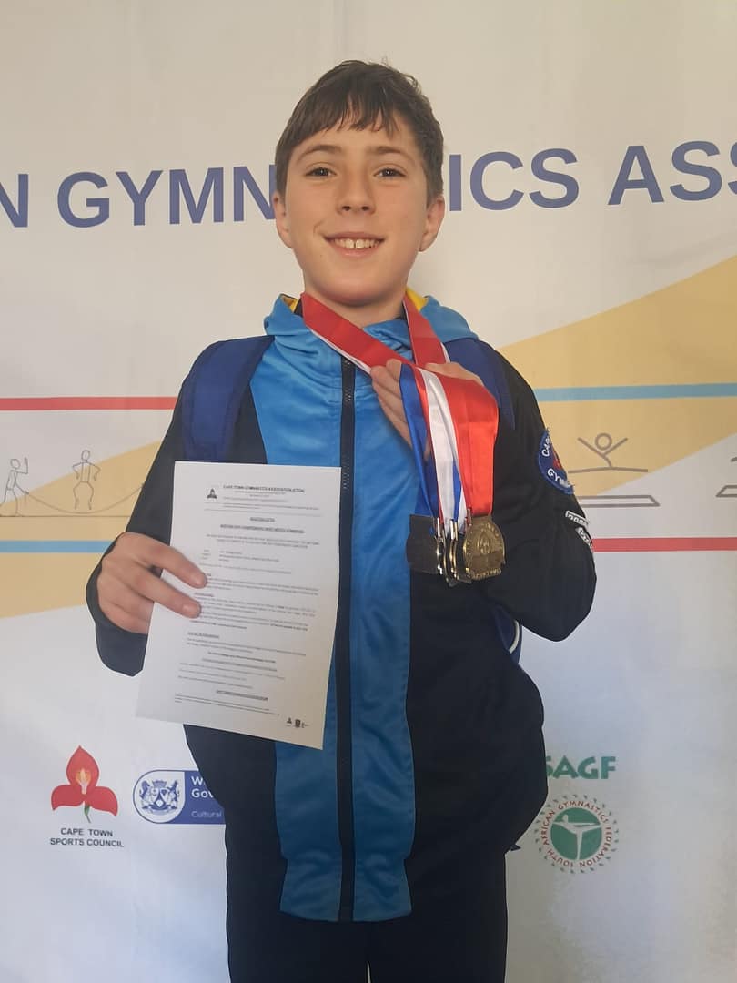 Xavier is a 12-year-old gymnast from Sunningdale Primary in Cape Town whose journey is a testament to perseverance and the power of sport. For the past five years, gymnastics has provided focus and discipline for Xavier as he navigates life with ADHD and ASD. His dedication is a true inspiration, and his recent achievements are simply phenomenal. He is training four days a week at Mega Gymnastics Academy. Xavier has consistently climbed the ranks in his sport; his impressive record includes: