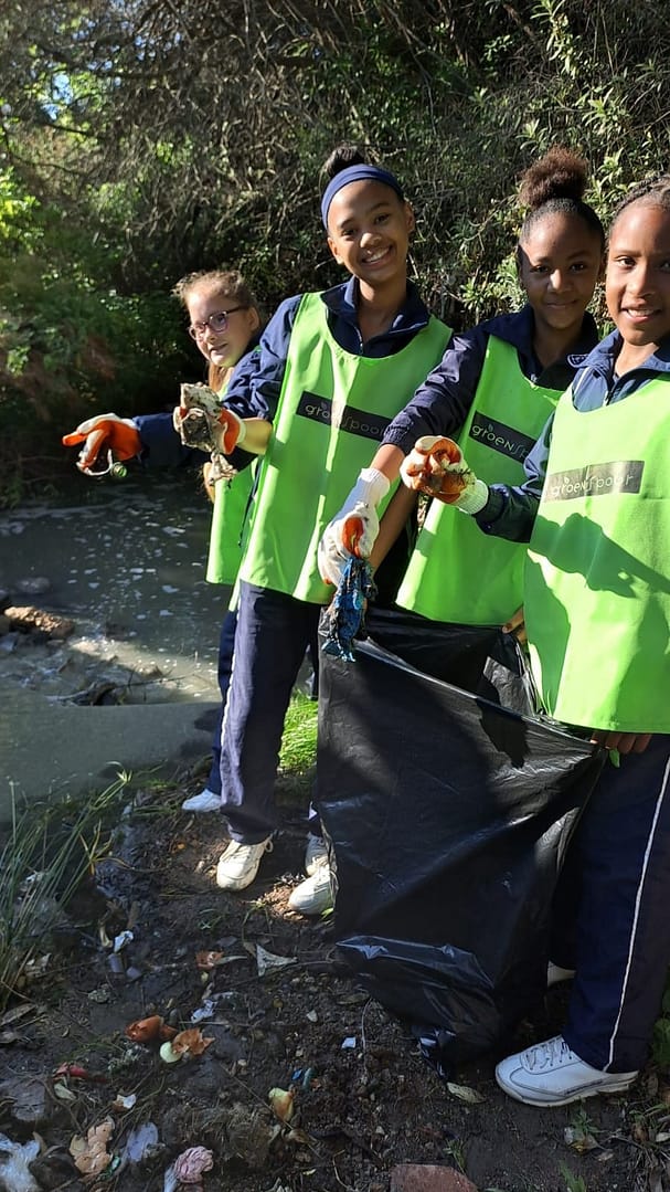 Water Week. Kabega Primary School learners cleaned along the Baakens River and monitored water life.