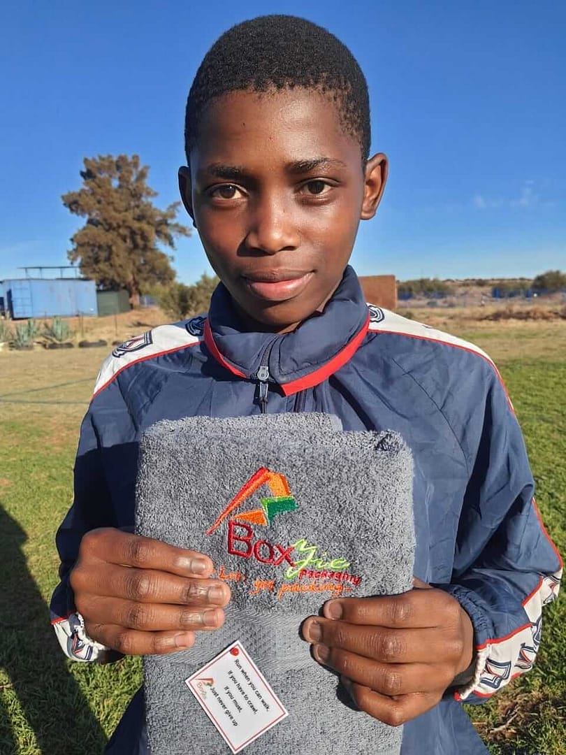 Kathu High School Cross Country: The Cross Country Athletes took part in the second AGW league in Postmasburg on Friday. They are committed with the self-discipline to focus on personal growth with each event. We would also like to make use of this opportunity to thank Boxzie Packaging for the sponsorship of towels for wiping away all the sweat and tears of hard work towards success.
