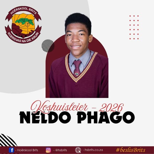 Baie geluk aan Hoërskool Brits se Neldo Phago en Danika Lombard wat verkies is tot die W.R. Joyce-koshuis se leiers vir 2026.
