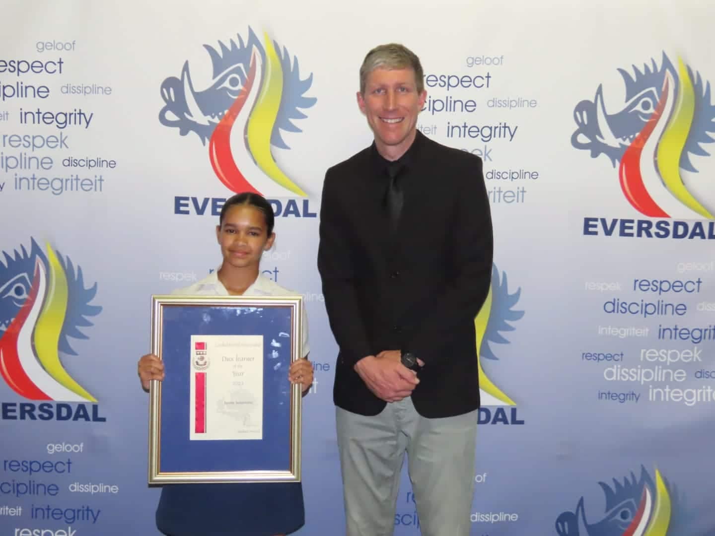 Caitlyn Potgieter & Jovan Burke het hierdie jaar die Skoolhooftoekenning by Mnr. Gys Burger ontvang.