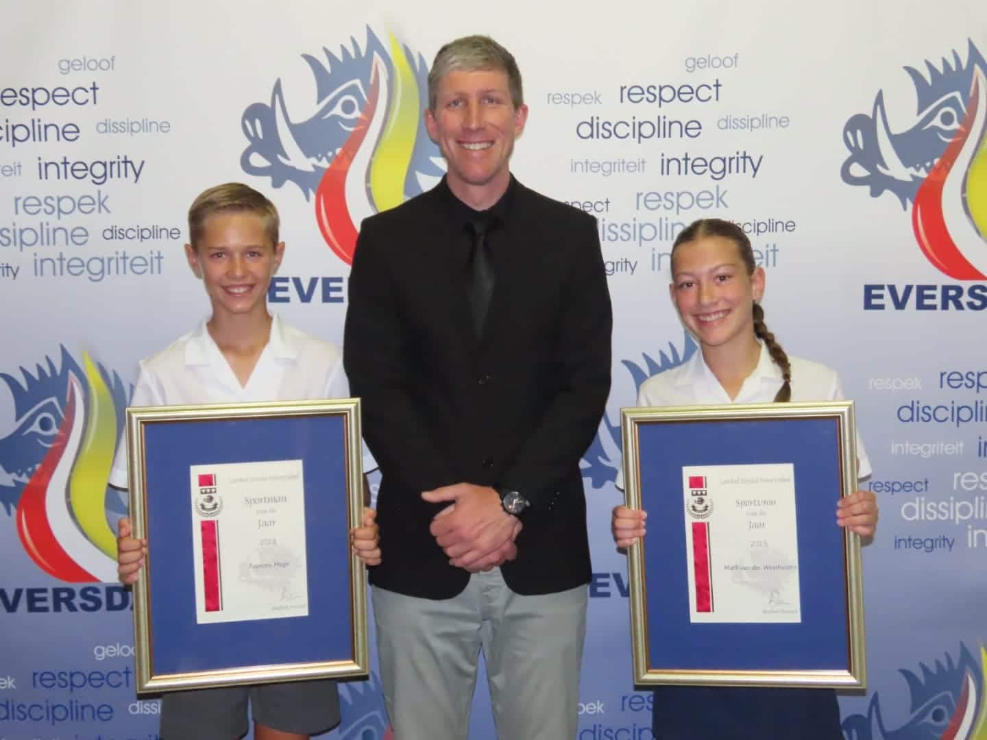 Welgedaan aan Francois Hugo (Sportseun van die jaar) en Marli van der Westhuizen (Sportdogter van die jaar).
