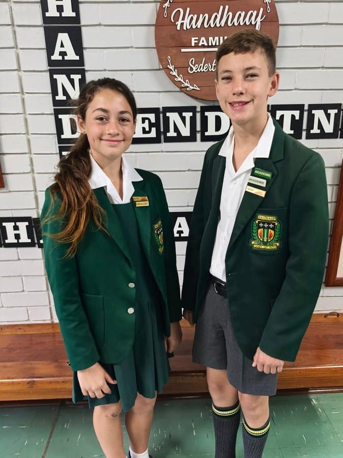 Baie geluk aan Janroux McLoughlin en Carli Bekker van Laerskool Handhaaf wat die toekennings vir Jonge Heer en Jonge Dame tydens hulle jaarlikse prysuitdeling ontvang het. Julle is ‘n ware voorbeeld vir ons leerders.