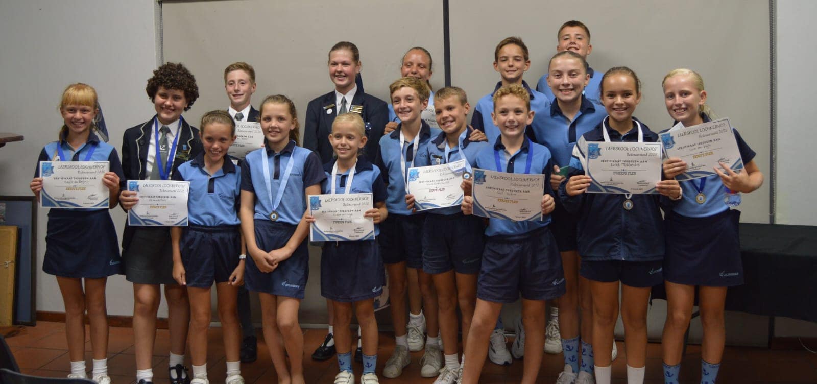 Agter v.l.n.r. Karoo Jansen van Veuren, Anlia le Roux, Liana Horn, Hunter Brummer, Matthew RossouwVoor v.l.n.r.Kayla de Bruyn, Zhara du Toit, Annelize du Toit, Kaylen Coetzee, Alissa van Wyk, Arend Jansen van Veuren, Frans-Ernst Jacobs, Neil Botha, Yanka Coetsee, Luché Terblanché, Livia van Wyk
