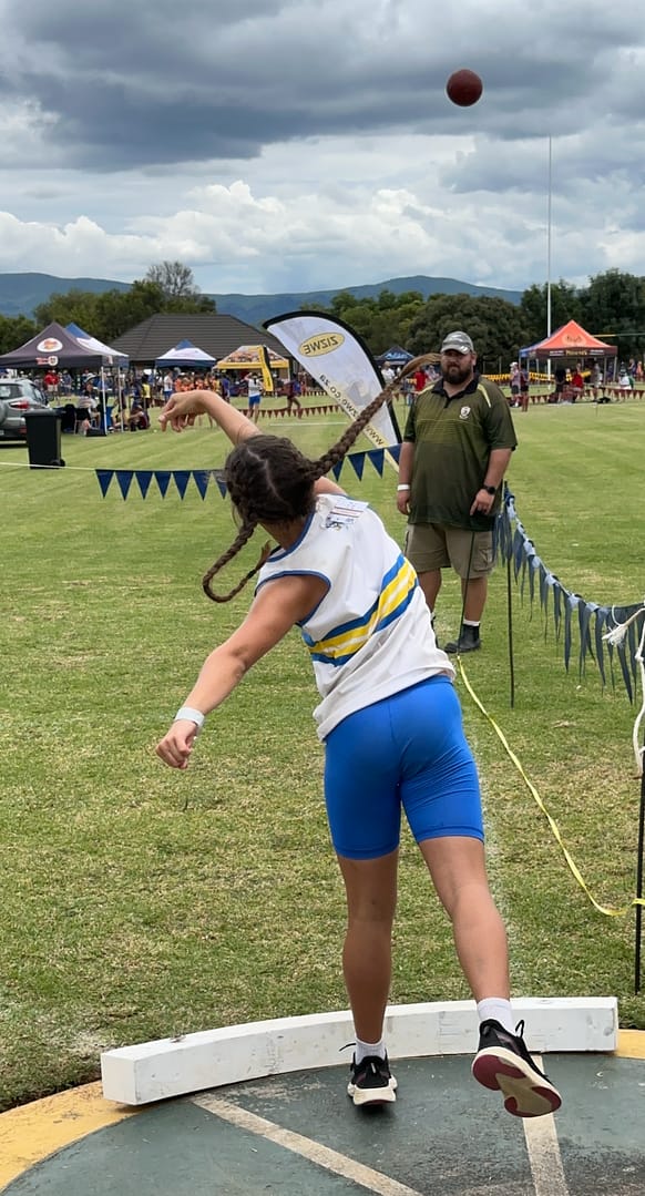 - Twee van ons dogters, Vanessa Badenhorst en Caitlin van Rooyen het ook die rekords laat spat by die gewigstoot afdeling vir Dogters o/10, met ‘n afstand van 9.42m en 8.60m onderskeidelik.