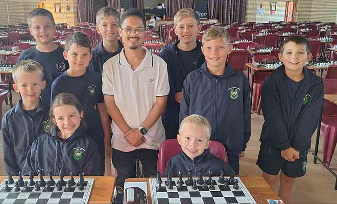 Laerskool Overberg leerders Kobus van der Westhuizen (wat in die 0/10 ouderdomsgroep deelgeneem het – regs) en Krishna Bantom (wat in die 0/14 ouderdomsgroep deelgeneem het), het op Saterdag, 9 April 2022 aan ‘n Overberg Federasie Skaaktoernooi deelgeneem. Elkeen het ‘n medalje verower.