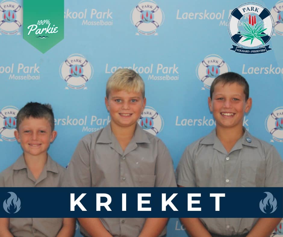 Drie van Laerskool Park se spelers is gekies om SWD Garden Route Badgers te verteenwoordig by die o.11 Kriekettoernooi te Oudtshoorn van 6 tot 8 Maart. Baie geluk Johan Swanepoel, Adriaan Harmse en Eben Gericke met hierdie mooi prestasie.
