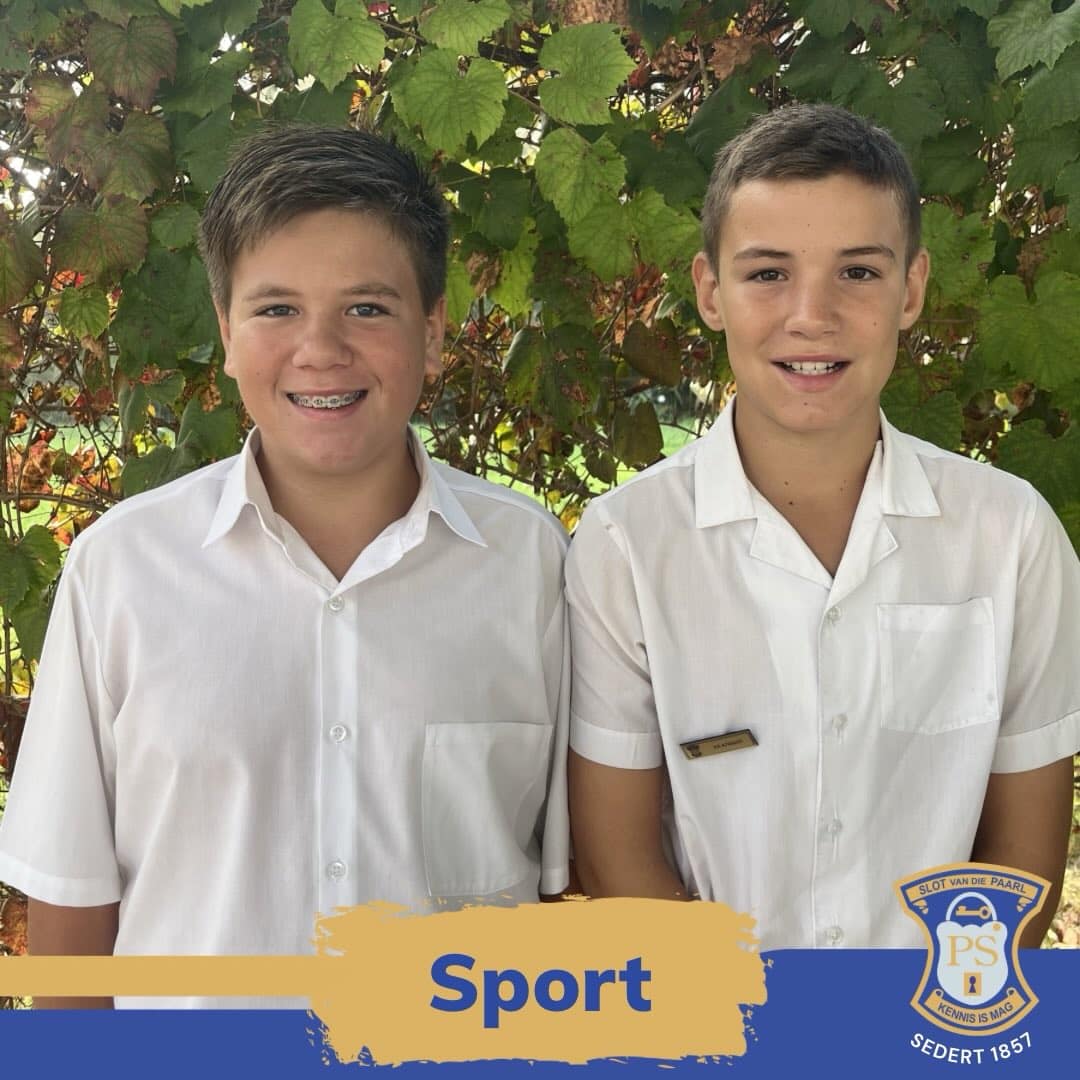 Baie geluk aan Jan-Harem du Plooy, Gr.7 (links), wat genooi is om aan die Jeugskou WP Kampioenskappe deel te neem op 1 Mei 2026 in Villiersdorp! Laerskool Slot van die Paarl is baie trots op Juan Witsche,Gr. 6 (regs), wat onlangs sy WP-klere ontvang het en uitgenooi is om die skool later vanjaar by die SA Jeugskou-byeenkoms te verteenwoordig.