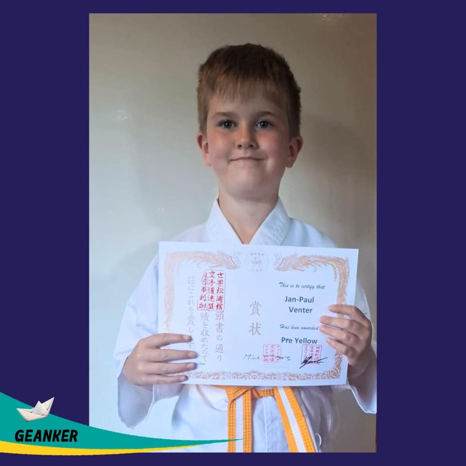 Jan-Paul Venter, Gr. 1, het nie net hard gewerk in sy klas nie, maar ook tydens sy buitemuurse aktiwiteite. Hy het sy geel gordel in karate verower — ’n ware bewys dat harde werk en dissipline vrugte afwerp. Baie geluk, Jan-Paul! Laerskool Swartkop is baie trots op jou.