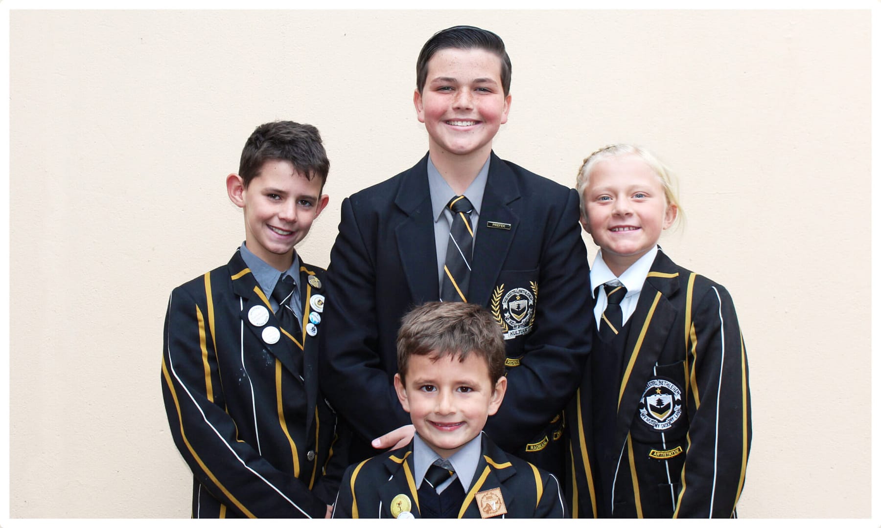 Agter van links na regs: Charl Naudé (gr5); Kai de Klerk (gr7); Mia Rautenbach (gr3) Voor: Andries van der Walt (gr2)
