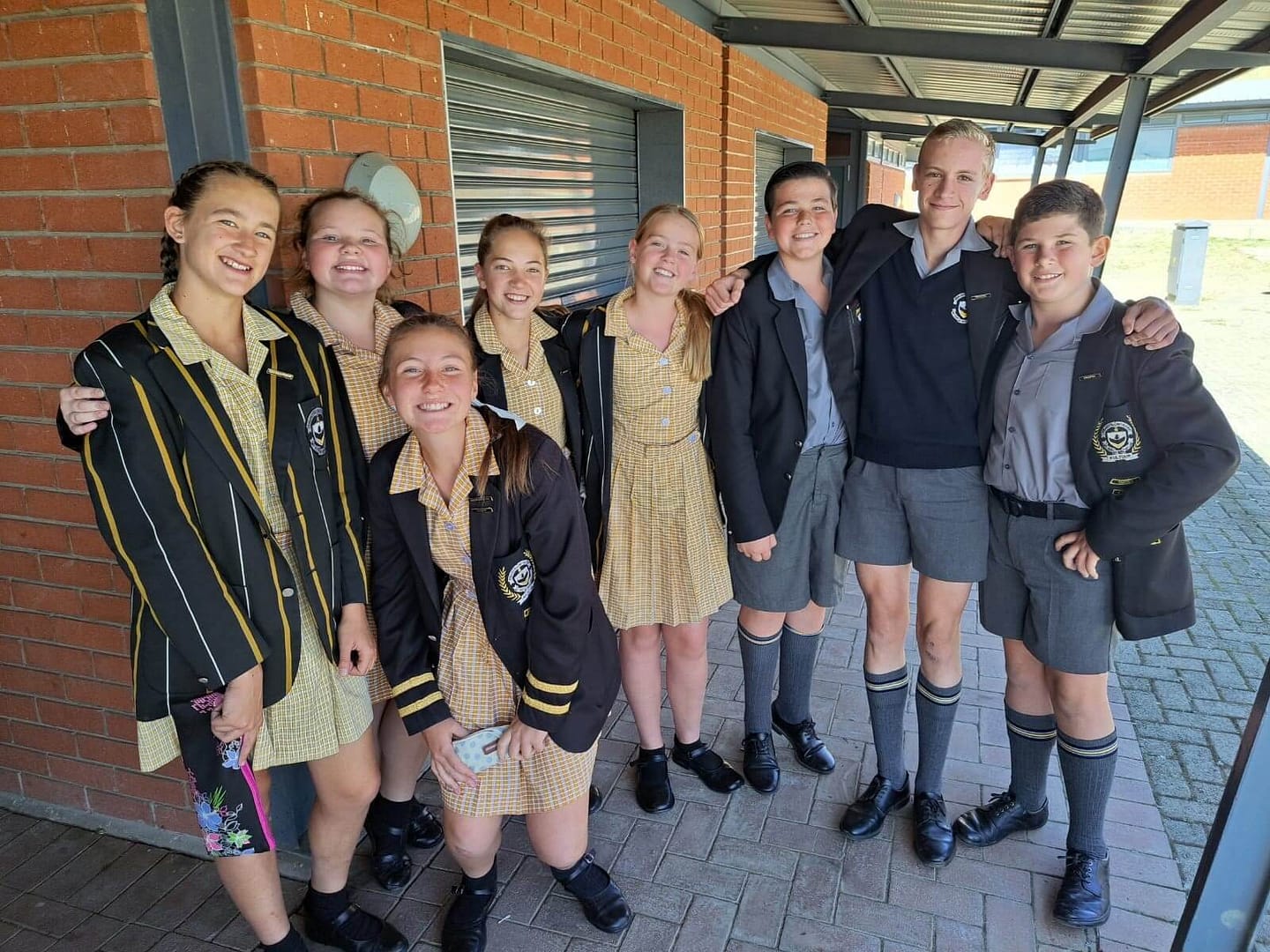 Vlnr: Jean-Marie Liebenberg, Christiné Bester, Marné Cornelius, Nienke van Zyl, Kaylin van Rooyen, Kai de Klerk, Owen Pelser en Koot Bender