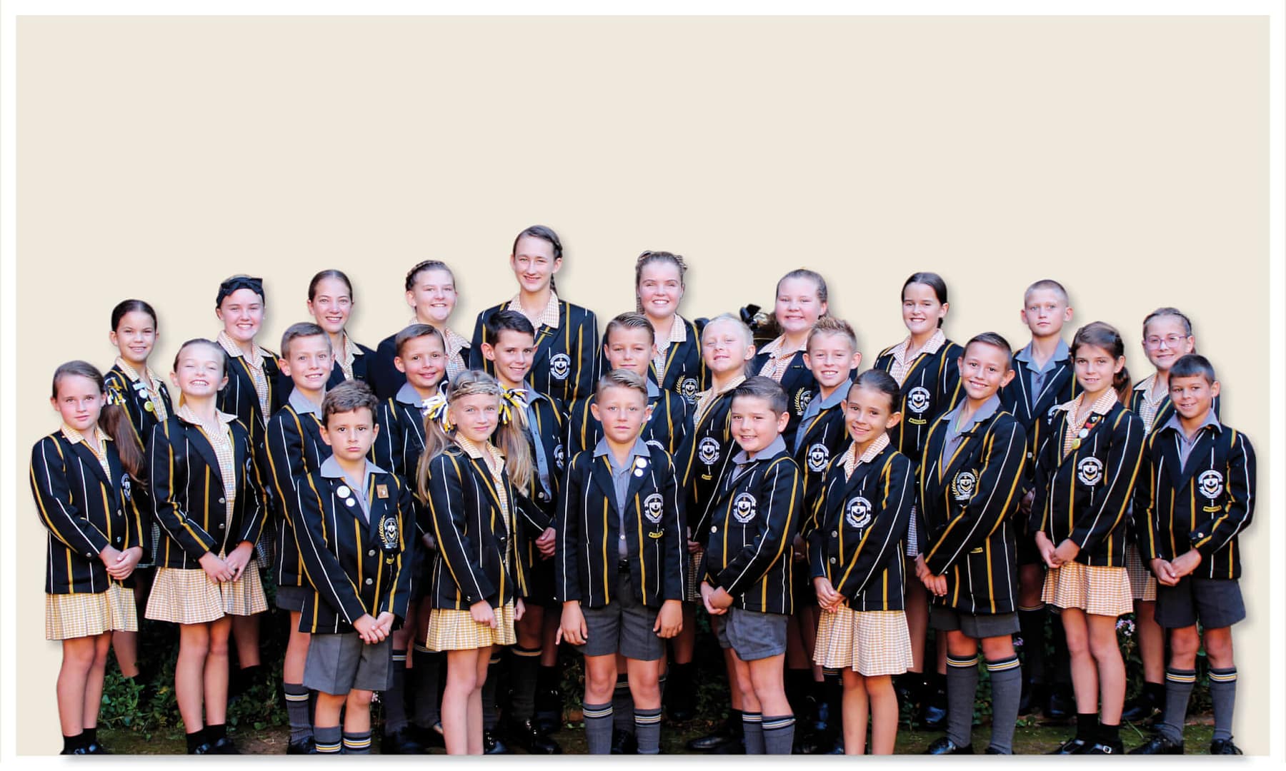 Voor – links na regs: Andries vd Walt Gr 2; Franzelle van Zyl Gr 2; Müller Bosch Gr 2; Stef vd Berg Gr 3; Colene Koch Gr 2 Middel – links na regs: Hayleigh Roux Gr 3; Anke vd Berg Gr 4; Alrich Zietsman Gr 4; Petri Coetzee Gr 5; Charl Naudé Gr 5; Nacah Bosch Gr 5; Mia Rautenbach Gr 3; Joshua de Jesus Gr 5; Liam Amaro Gr6; Kaylee Silcock Gr 4; John Boshoff Gr 3 Agter – links na regs: Miah Grobbelaar Gr 5; Inge Meintjes Gr 5; Nienke v Zyl Gr 7; Lucia Botha Gr 7; Jeanne-Marie Liebenberg Gr 7; Heilene Meintjes Gr 6; Christiné Bester Gr 7; Mariné Theron Gr 6; Johan de Jager Gr 6; Lana Meyer Gr 5 Afwesig: Emma Smit Gr 6
