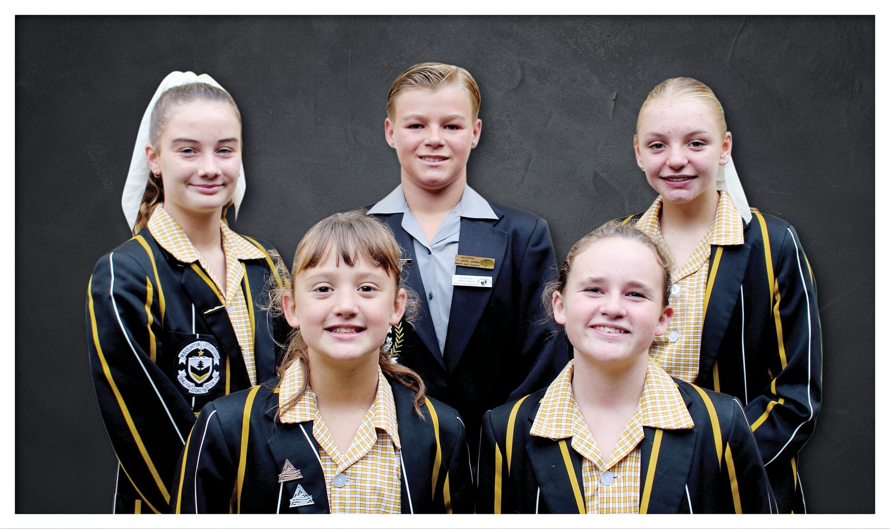 Agter v.l.n.r Heili van Heerden, Nacah Bosch, Emme Wessels Voor v.l.n.r Hayleigh Roux, Iminé Dercksen