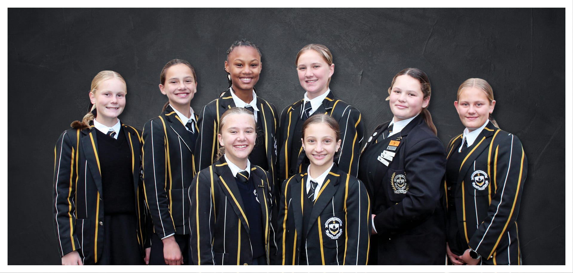 Voor (l-r): Ayanda Lephoto; Anouk Bredenkamp Agter (l-r): Addison Breeds; Mia Theron; Meré Du Plessis; Rianza Boshoff; Cloë Osler; Ezelke Haasbroek
