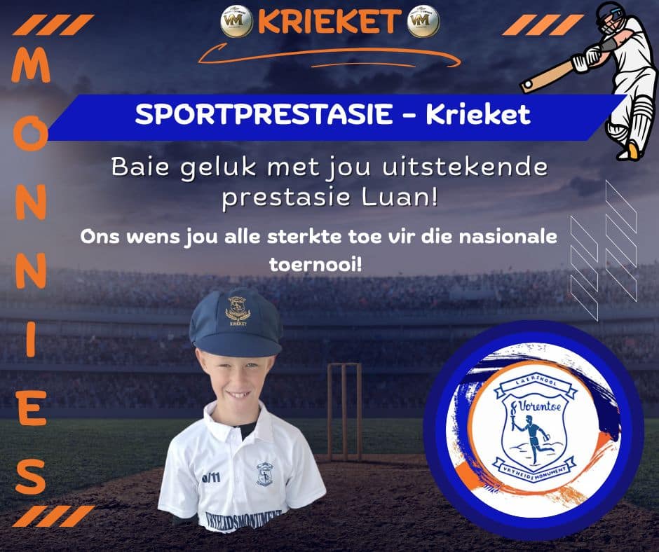 Laerskool Vryheidsmonument krieketspeler presteer uitstekend