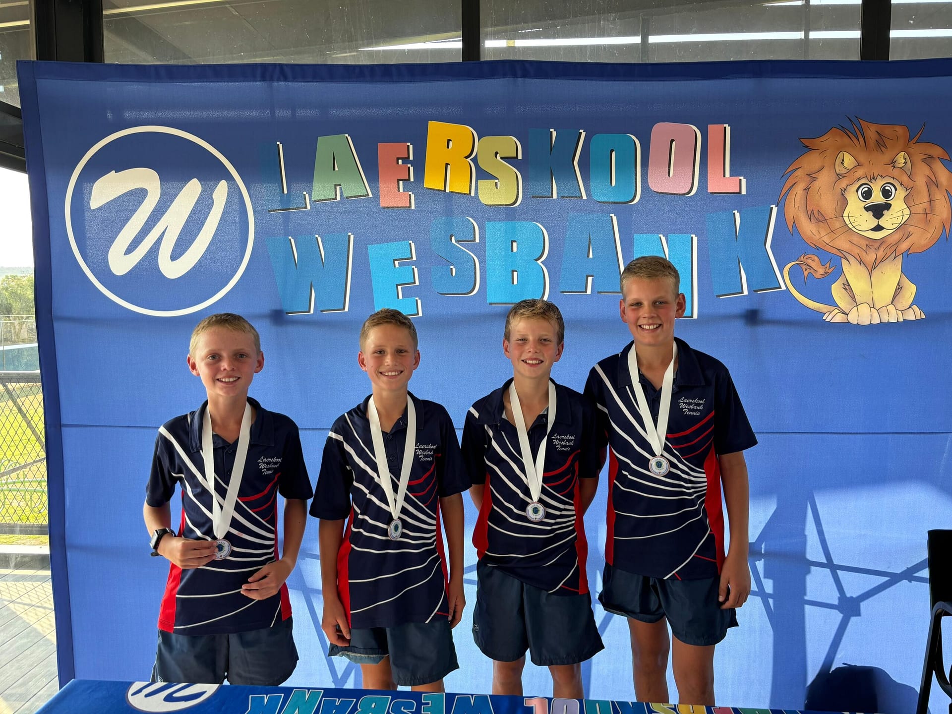 Laerskool Wesbank het die afgelope naweek ons 2de, baie suksesvolle, Tennistoernooi aangebied. Groot skole van onder andere die Kaap, het deelgeneem. Ons het 7 skole geakkommodeer. Ons spog met ons Seuns 1ste span wie as wenners van die Toernooi aangewys is, asook ons Seuns 2de span wat 3de geeïndig het.