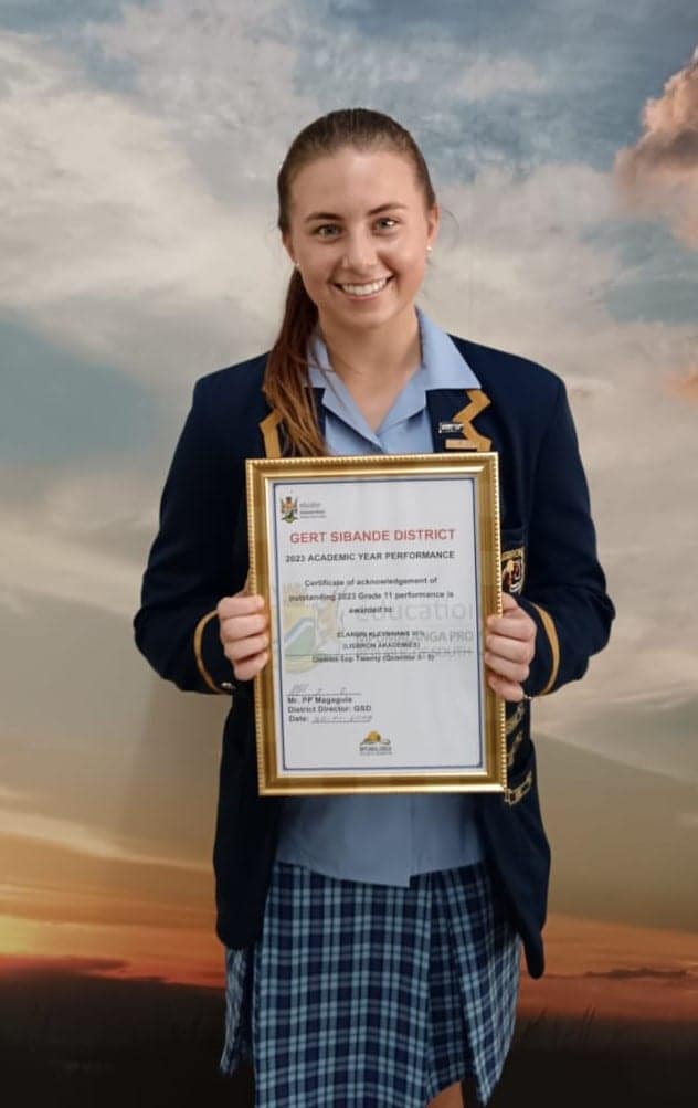 Elandri Kleynhans, one of the Top 20 grade 11 academic achievers in the district, also received a certificate for her excellent results at the end of 2023. The school also got recognition on provincial level. Ligbron ranks fourth in Mpumalanga for their 2023 matric results. The school also has the highest averages for Geography and Mathematics in the Mpumalanga.