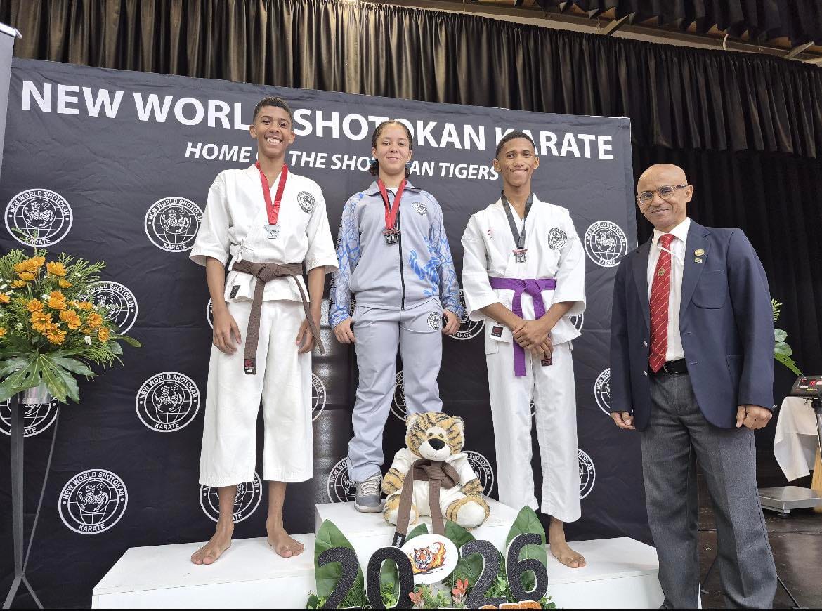 An outstanding display by Luke Adams, far left, and Azaria Sheldon, second from left side, who both secured silver medals in Brackenfell at the Tora School Sport karate & Kobudo Challenge. Well, done to these two. New Orleans Secondary School are very proud of you.