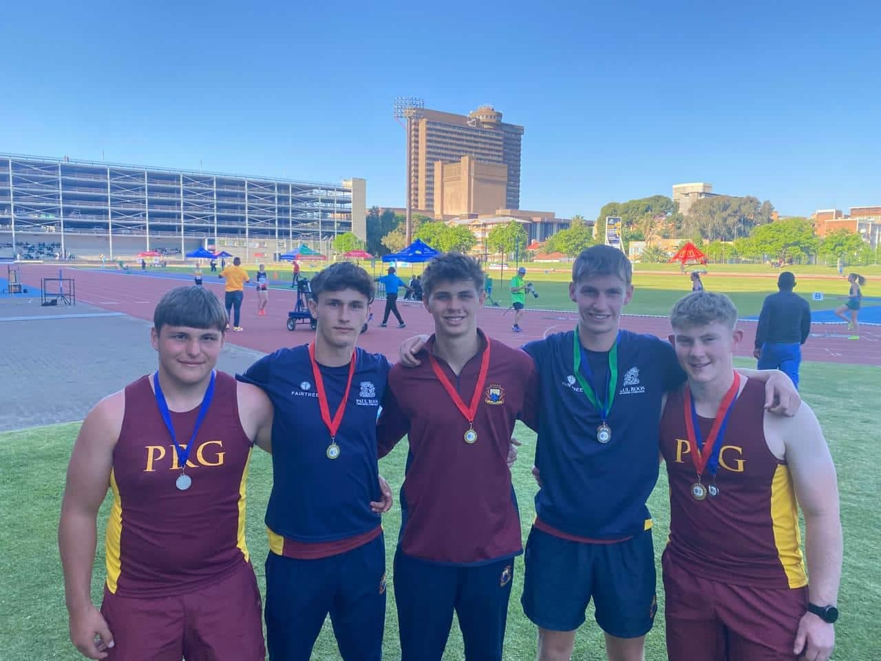 Congratulations to the Paul Roos Gymnasium Athletics team with their performance at the Grey & Oranje competition. The athletes won 7 medals and came 9th in the A-section of the competition. Pictured from left is Ethan Badenhuizen, Harrison Gibson, Marcus Viljoen, Jean Volschenk and Nathan Barnard.