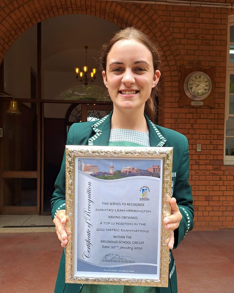Shantay-Leah Merrington, Pietermaritzburg Girls’ High School’s 2022 Dux, placed 3rd in the UMgungundlovu District and 2nd in the Msunduzi Local Municipality. Shantay-Leah achieved 7 As.
