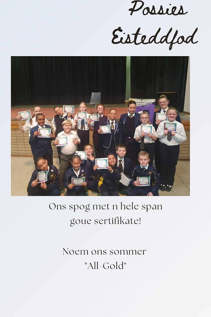“Just call us all-gold” were the words of our proud teachers who accompanied the eisteddfod learners to the Northern Cape Art Festival. Each of the 17 Postmasburg Primary learners walked away with a gold certificate – talk about mirror learners!Thank you to Mrs Leonette and Mrs Susana who accompanied our learners. You have once again made us proud!