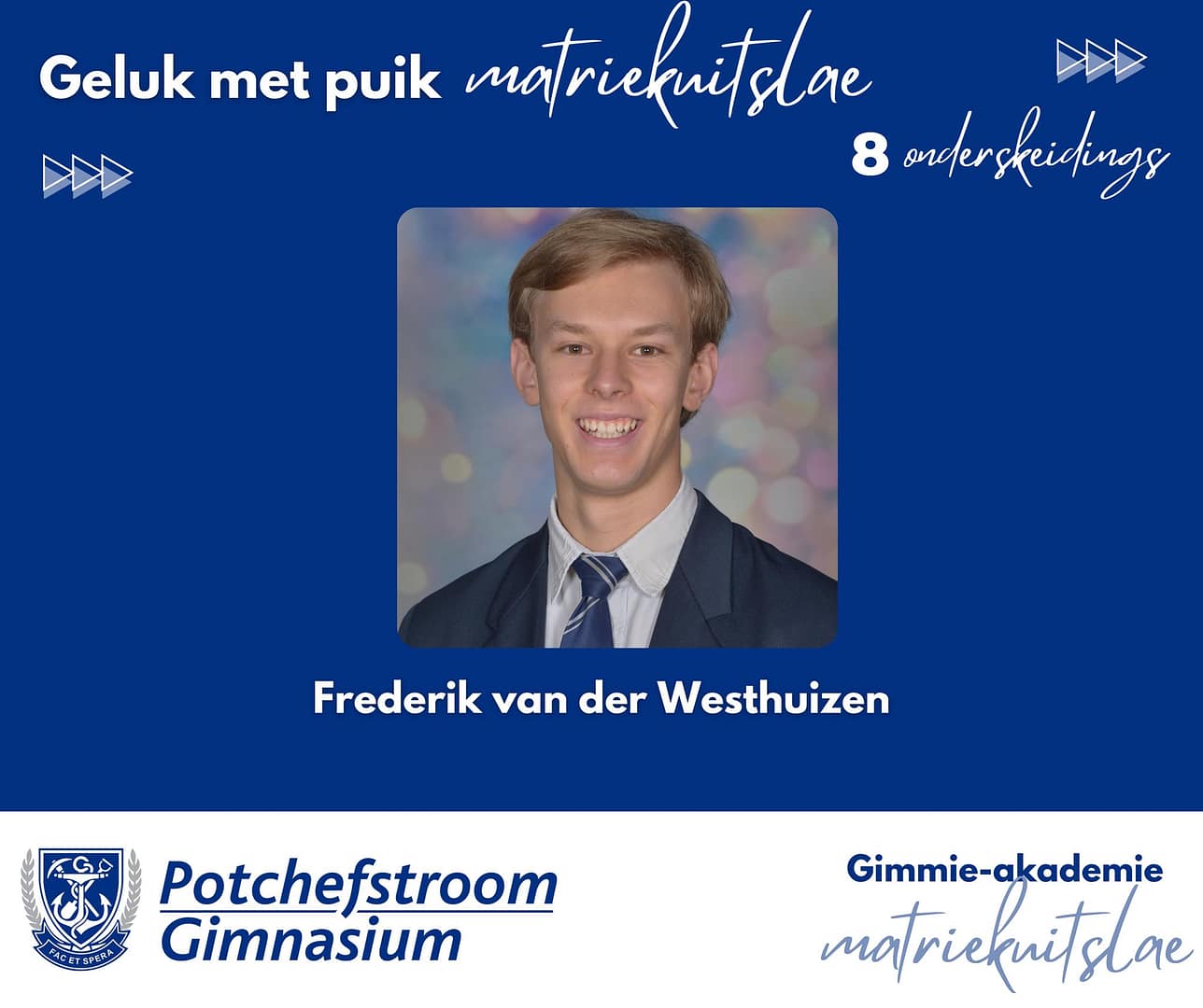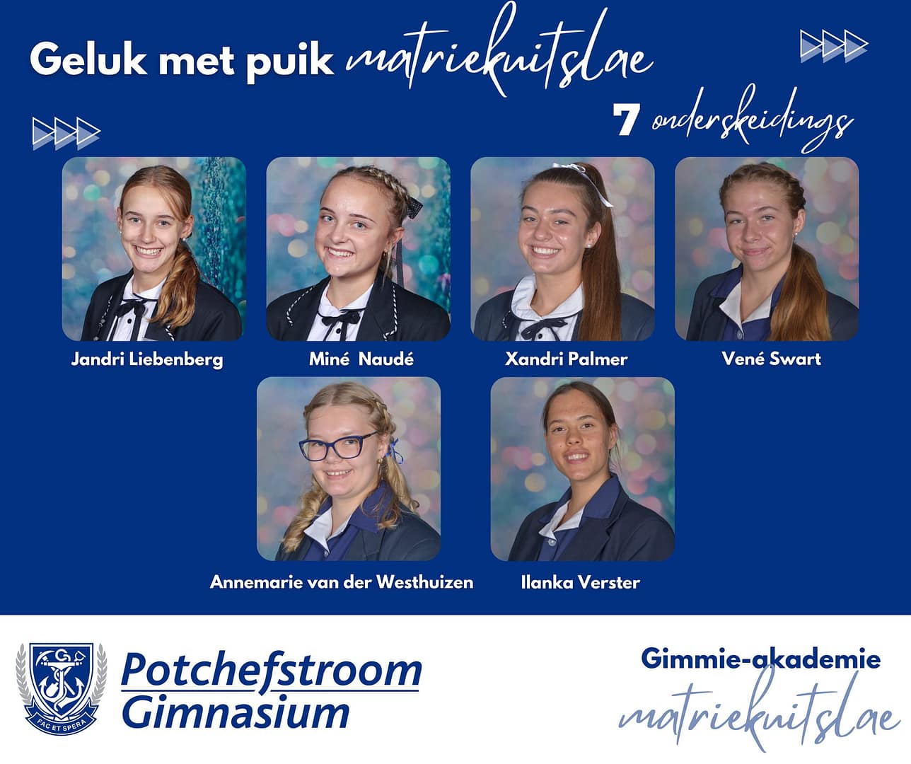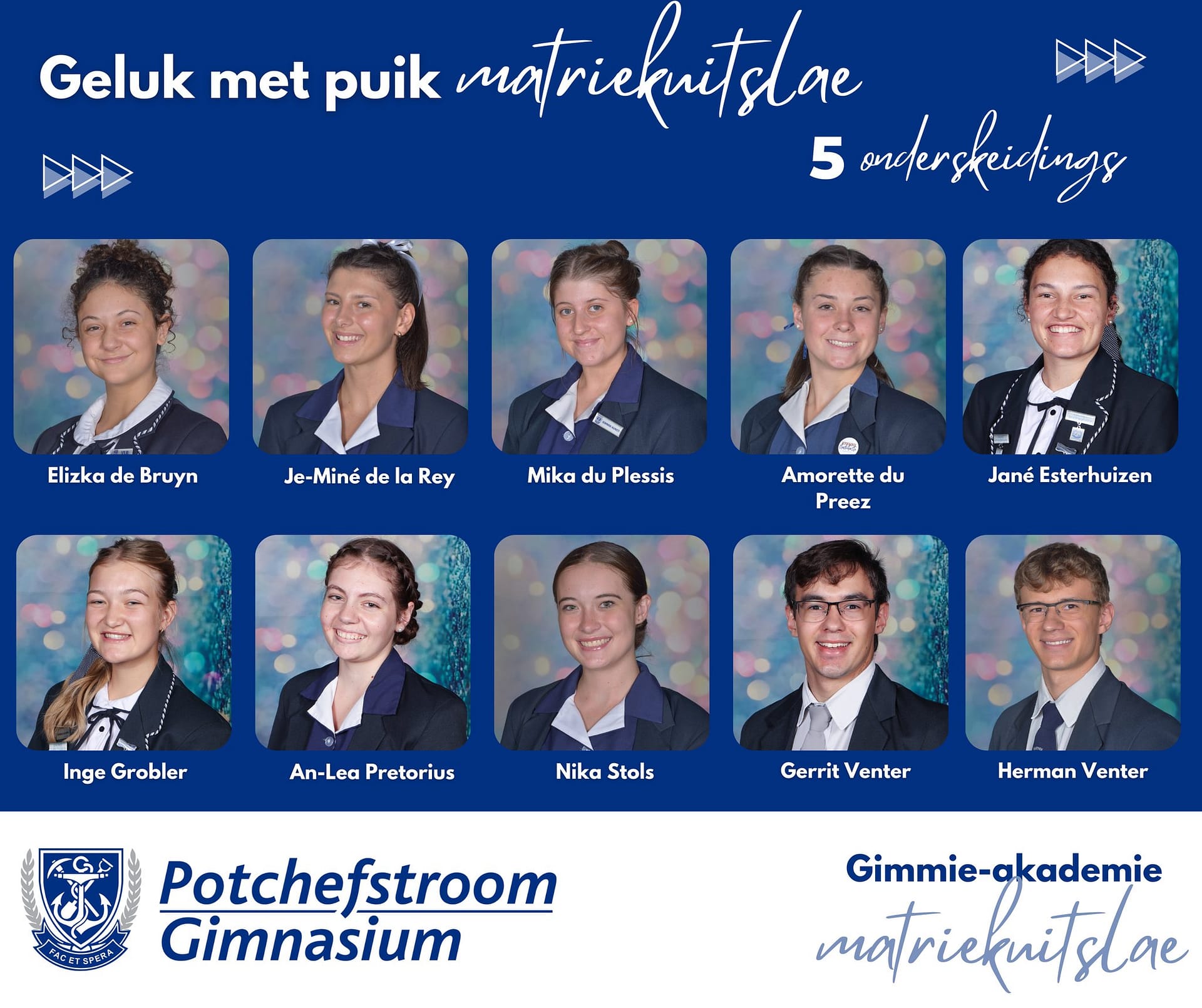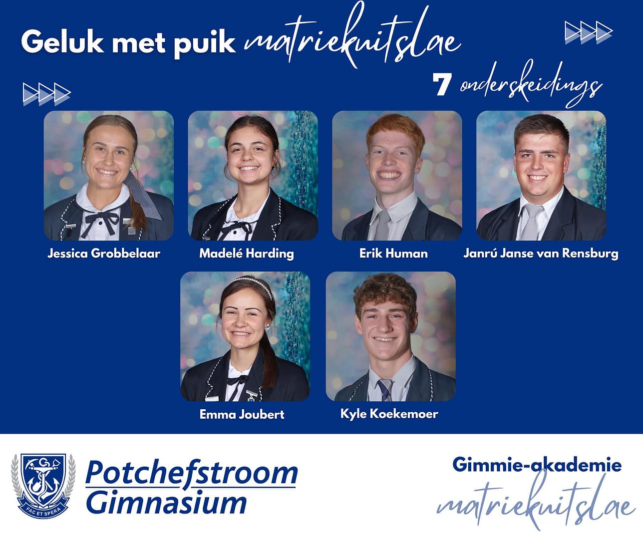 Baie geluk met PUIK uitslae, Potchefstroom Gimnasium matrieks van 2025. Gimmies is baie trots op julle deursettingsvermoë, dissipline en karakter.Dankie aan elke ouer en onderwyser wat deel was van dié spesiale groep leerders se vyf jaar lange reis by Gimmies.