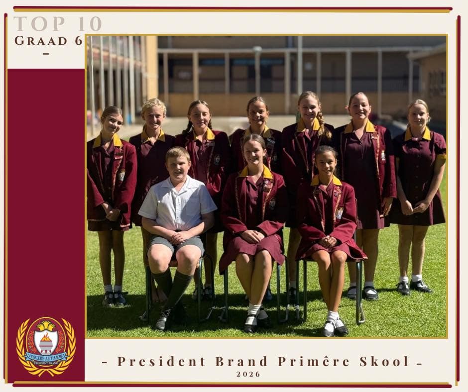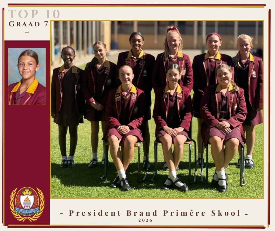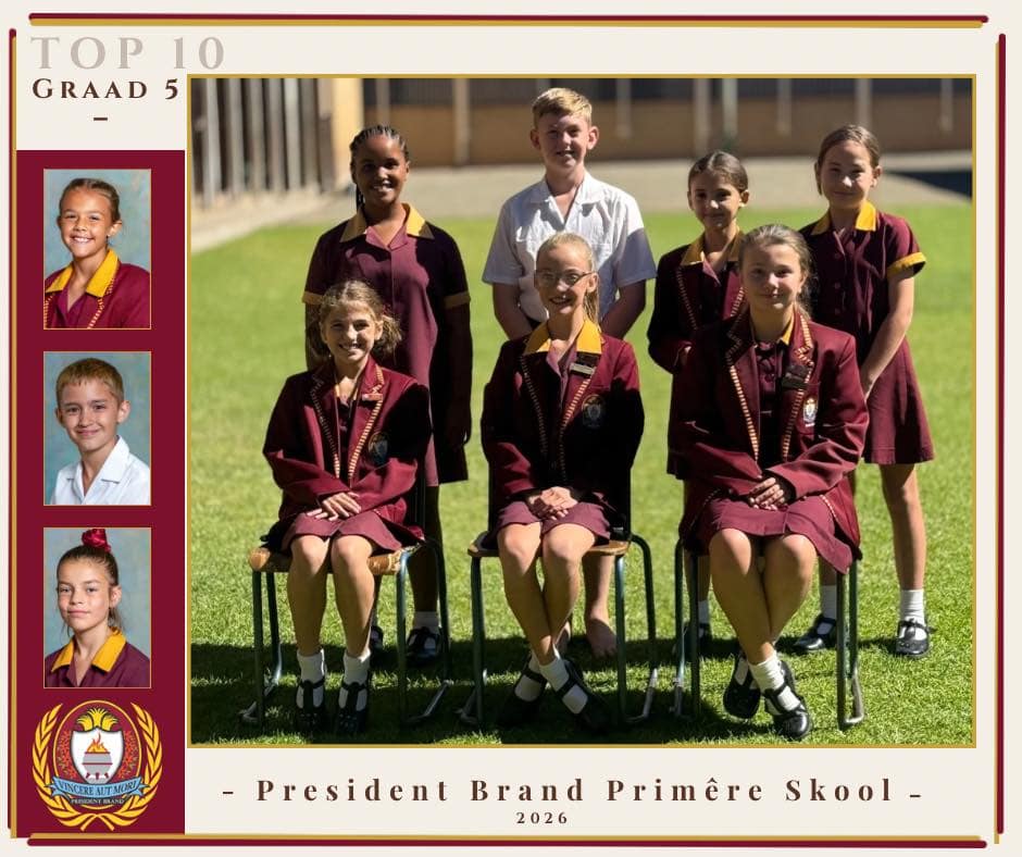 Baie geluk aan die volgende leerders van President Brand Primêre Skool wat hul plek in die Akademiese Top 10 vir Kwartaal 1 verdien het: