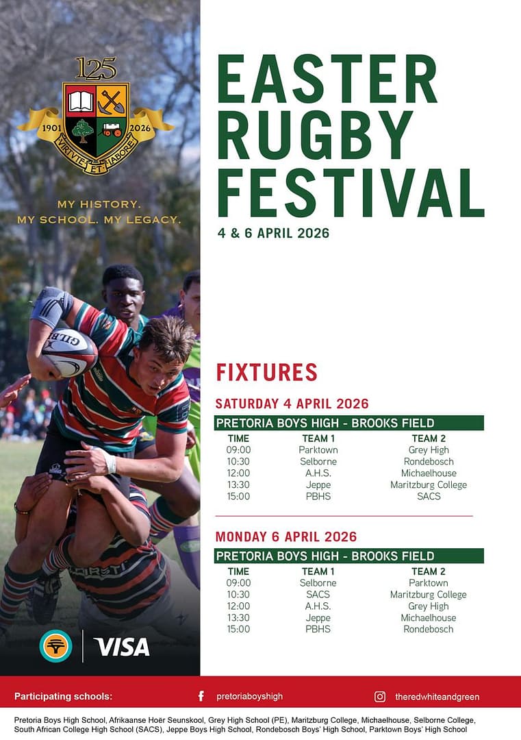 Pretoria Boys High School will celebrate its 125th anniversary by hosting a spectacular Easter Rugby Festival on 4