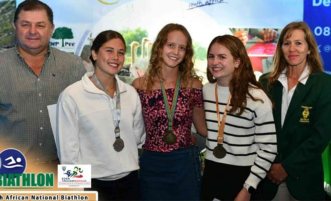 Rob Ferreira High School’s Mpumalanga Interprovincial High School winner of Biathlon 2023.On 16 January 2023 the interprovincial Biathlon took place at Rob Ferreira High School. The following athletes received outstanding results. In the U15 girls category Talita Wessels received a second place and Nina Wessels a third place. In the U17 category for girls Tiffany Marshall receives a first place and in the boy’s category Micheal Swanepoel received a second place. Rob Ferreira received the Mpumalanga Interprovincial High School winner award out of 8 High Schools. Rob is so proud of these athletes for keeping our schools name high.