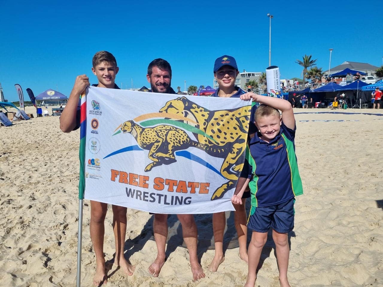 SA Beach Wrestling Kampioenskappe – Trots op ons Stoeiers. Ons is ongelooflik trots op ons vier stoeiers wat die naweek van 28 Maart 2026 aan die SA Beach Wrestling Kampioenskappe in Jeffreysbaai deelgeneem het en uitstekende prestasies behaal het.