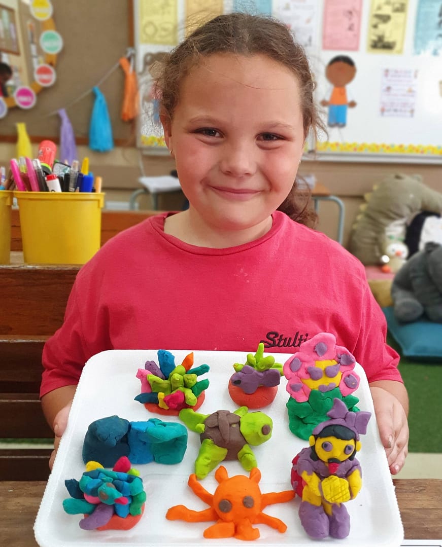 Stulting Primary School’s Grade 3’s went back to the basics! They used edible dough for improving their fine motor skills. We used play dough to create both 2D & 3D artwork! Observe their beautiful art creations. Don’t you just love how different and unique each child’s artwork is? This was their second Art assessment challenge.