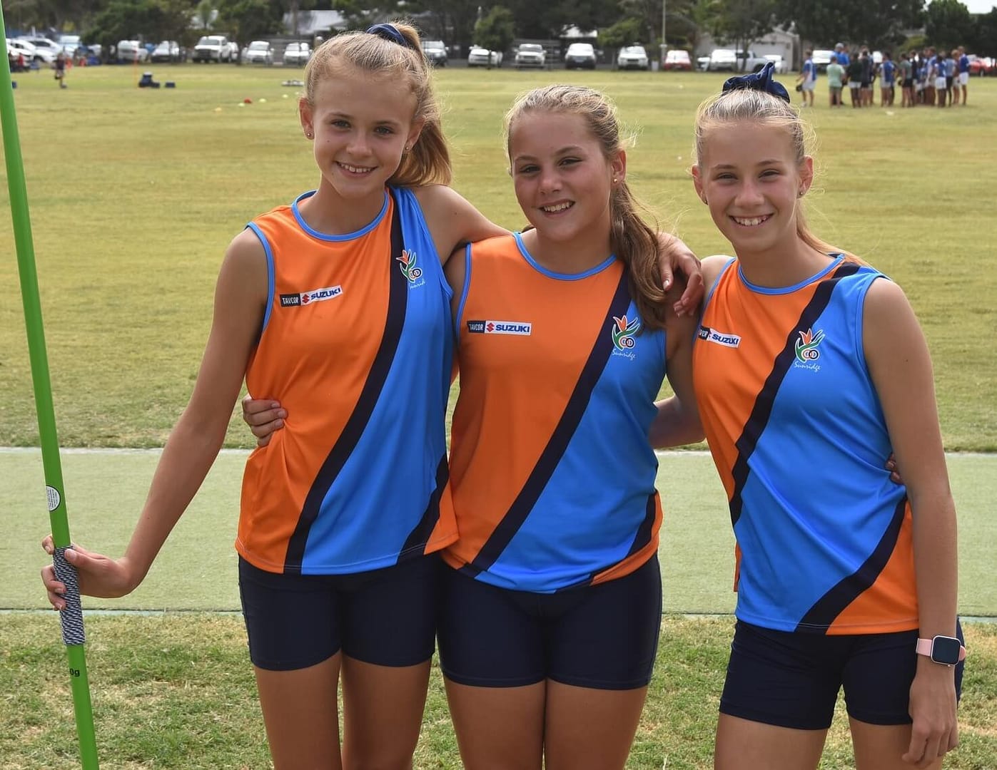 Karlie Janse van Rensburg, Minette van Zyl and Leanie Bouwer representing Sunridge in Javelin at the Dirk Brand Meeting on 3 February at Lorraine Primary