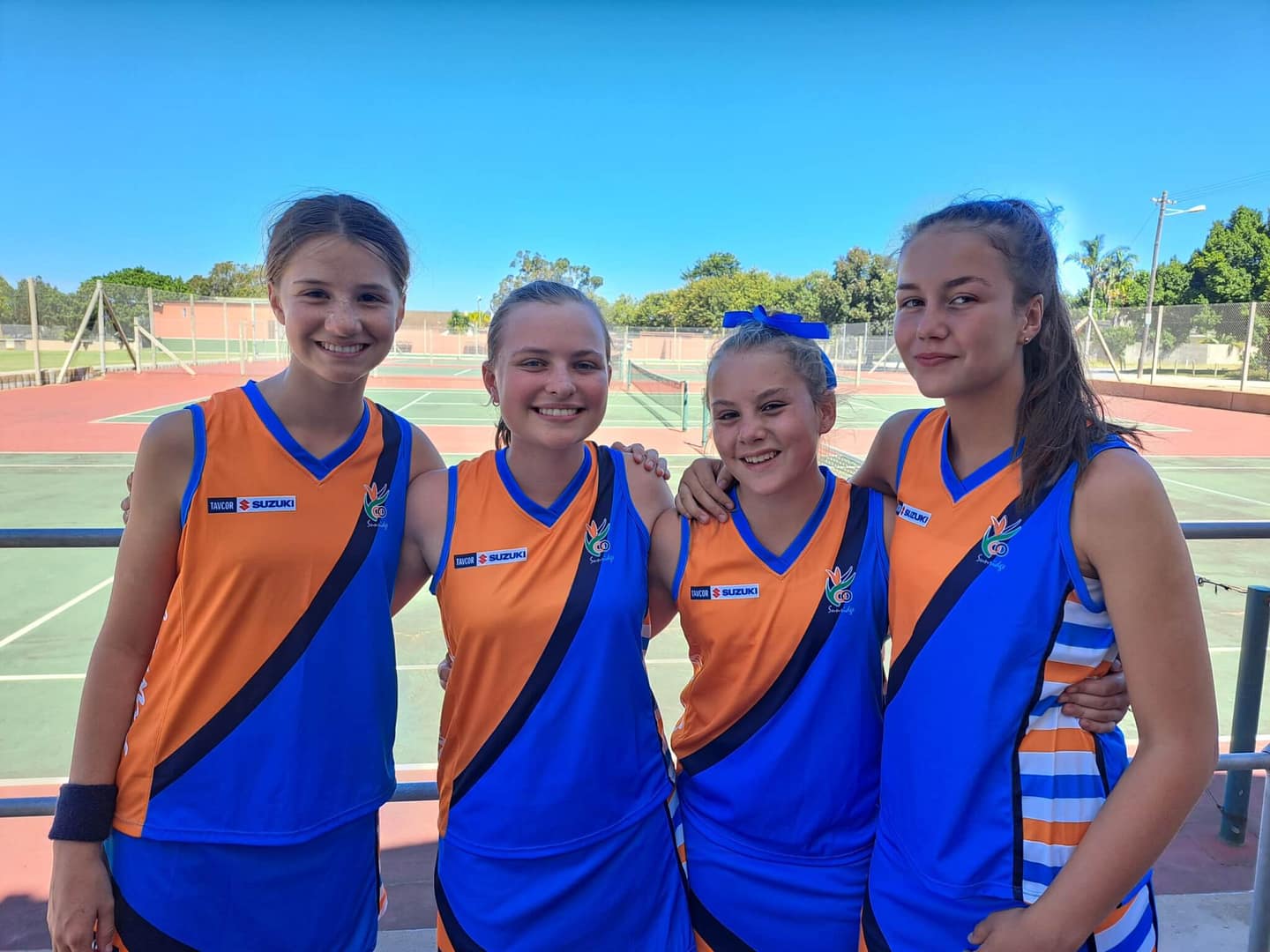 Sunridge 1st Team Tennis Girls ready to play their match against Claredon Park. From the left: Emily Ferreira, Madison Rieseberg, Minette van Zyl and Liné Nel