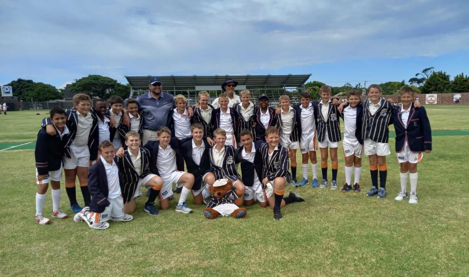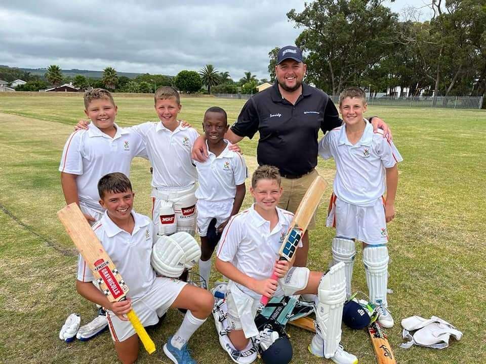 Sunridge 13A 6-a-side champions at Hoërskool Framesby Back row from left: Liam van Rooyen, Dandré Henwick, Nkosivile Ngxoza, Mr. C de Beer, Christiaan Barnard Front row from left: Stevan Trytsman, Hanno Winter