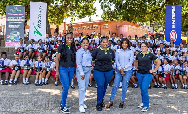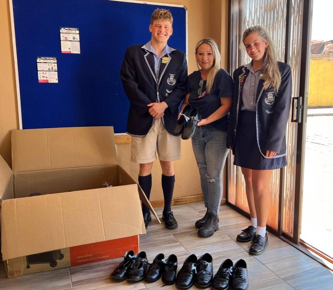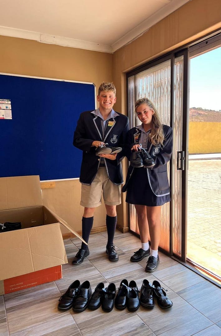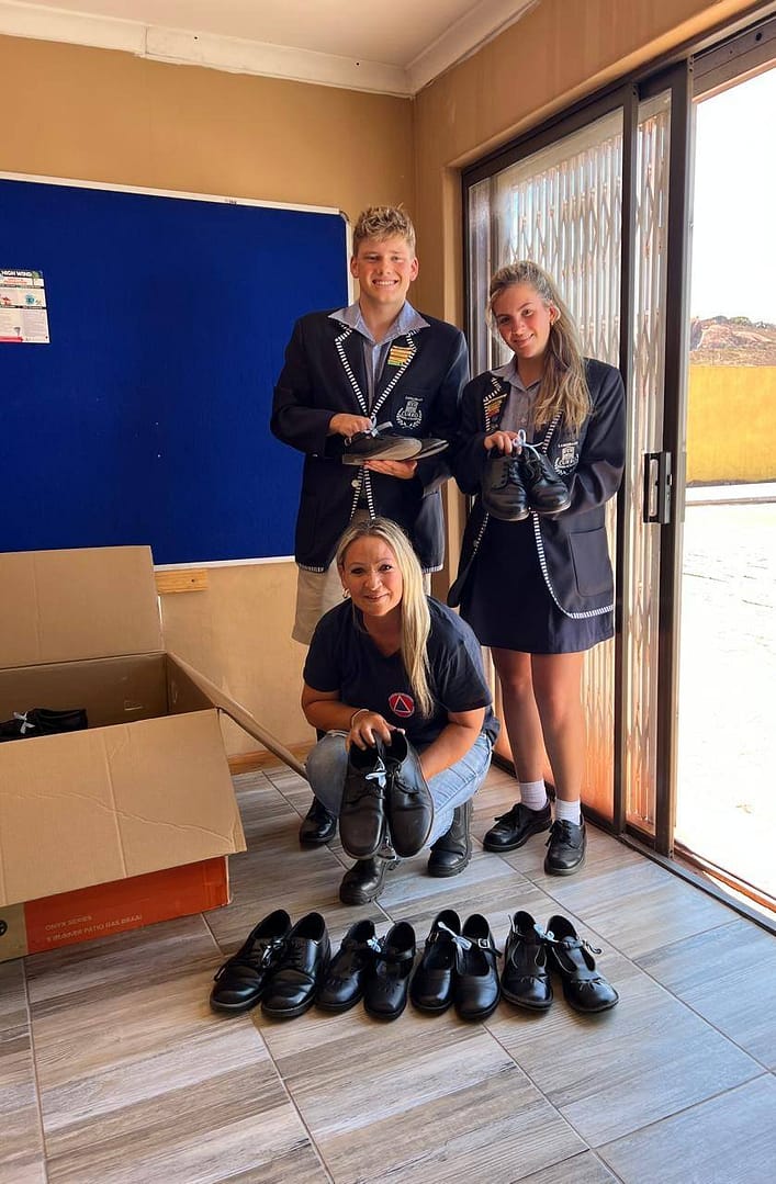 The Grade 12 learners of Curro Langebaan donating school shoes