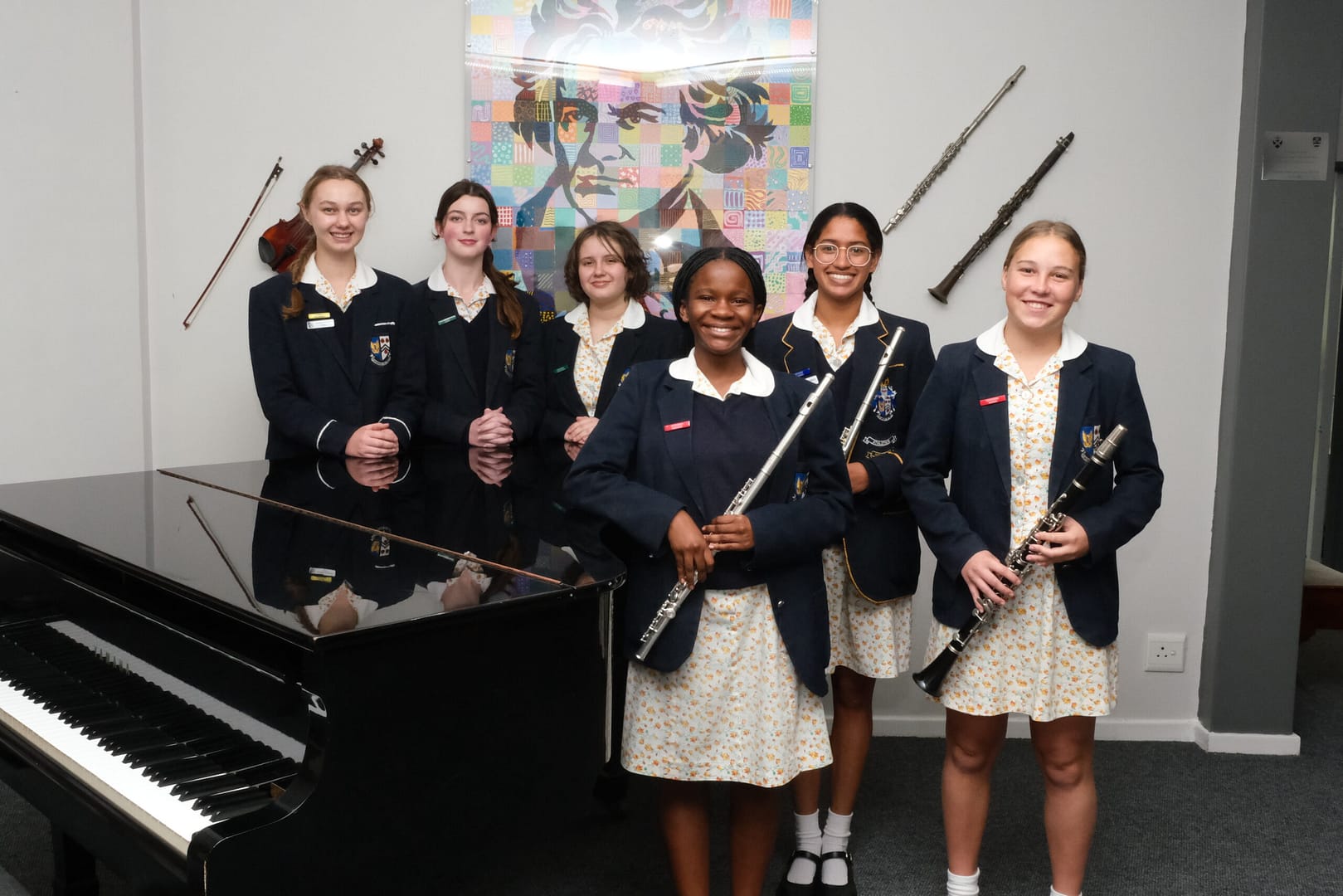 Grade 6 Trinity College Exams (Left to Right) Carla Taljaard (Singing), Regan Jones (Singing), Zovandra von Rahden (Singing), Rethabile Manoko (Flute), Erynne Marais (Flute), Katherine Human (Clarinet). Georgina Clarke (Singing) – absent from photo.