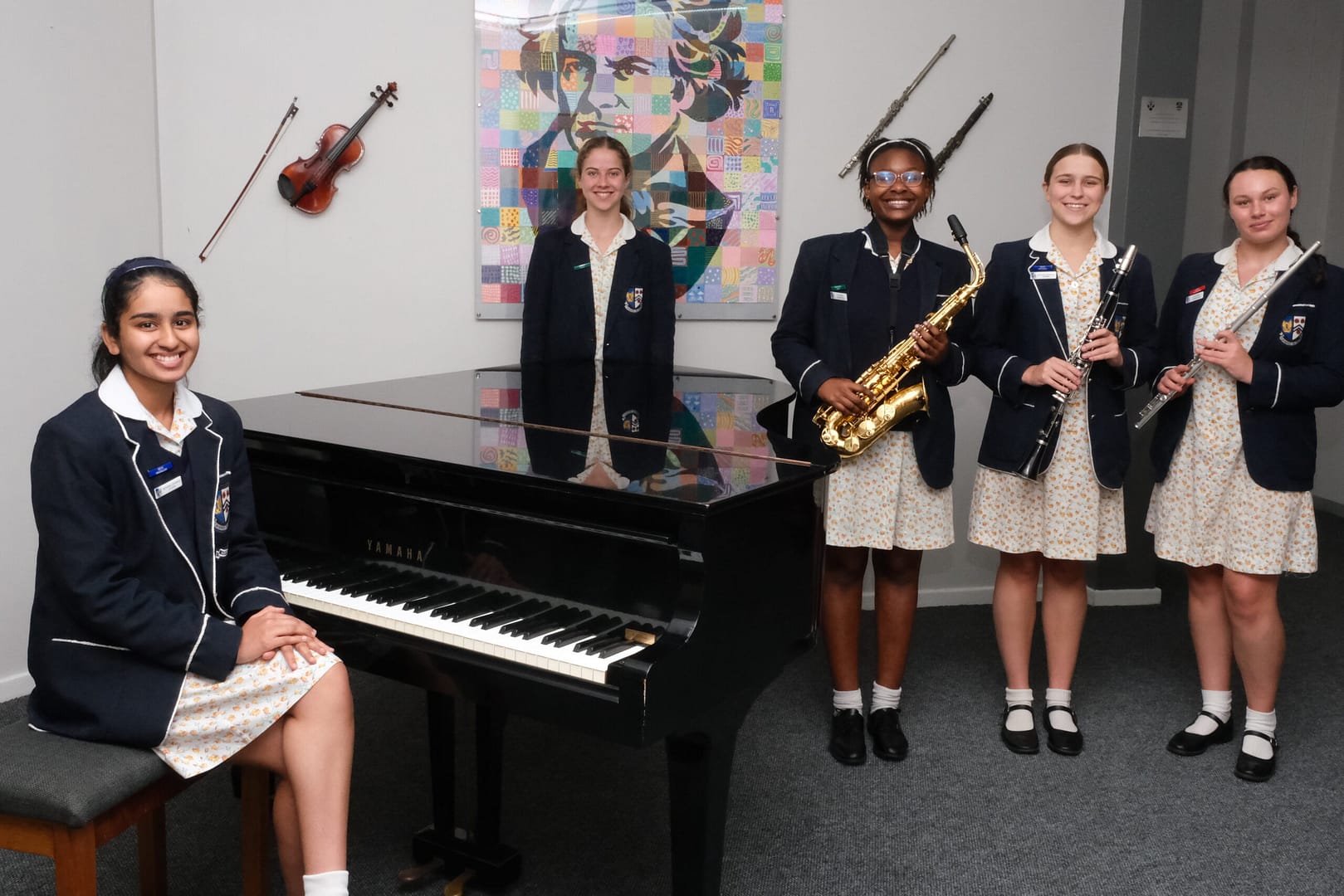 Grade 7 Trinity College Exams (Left to Right)Keya Mudaliar (Piano), Brinlee Peens (Singing), Babalwa Weiz (Saxophone), Ruth Hatfield (Clarinet), Ruth Ackerman (Flute) Kalia Govender (Saxophone) – absent from photo.