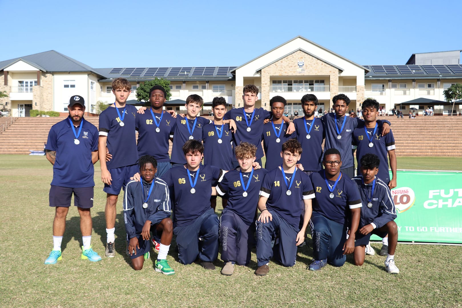 Back Row: Coach – Mr Nicholas da Silva Ferreira, Joseph Els, Nkanyezi Vundla, Luke Besnard, Shahid Kazi, Shea McAlery, Onako Majeke, Zia Varachia, Tyelle Hiralal, Dhivyen Naidoo,