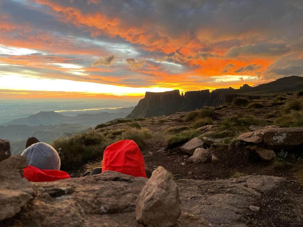 Generally, the weather was good. There was a cold wind that prevailed from the interior of Lesotho for most of the trip. This helped to keep the escarpment edge clear of mist for the most part. We only had a mist problem on the day we submitted Giants Castle (Day 8) and yet, even here, the mist cleared as we reached the summit to reveal the most beautiful late afternoon views over the Midlands. We experienced an incredible storm that brought sleet and hail as we headed for Thabana Ntleyana. After the storm, the winds on the summit ridge were incredibly strong nearly knocking us off of our feet at times. While the experience left us cold and wet, it was exciting to experience such high winds and such an interesting mixture of sleet and hail. Unsurprisingly, we didn’t spend long on this summit and headed for cover from the wind soon afterward. A similar storm hit us during the night and the following day we walked to the Sani Pub on the frozen, hail-littered ground. Other than that, we had incredible views of the escarpment, the KwaZulu-Natal midlands, and the interior of Lesotho, a notable highlight for Georgina.