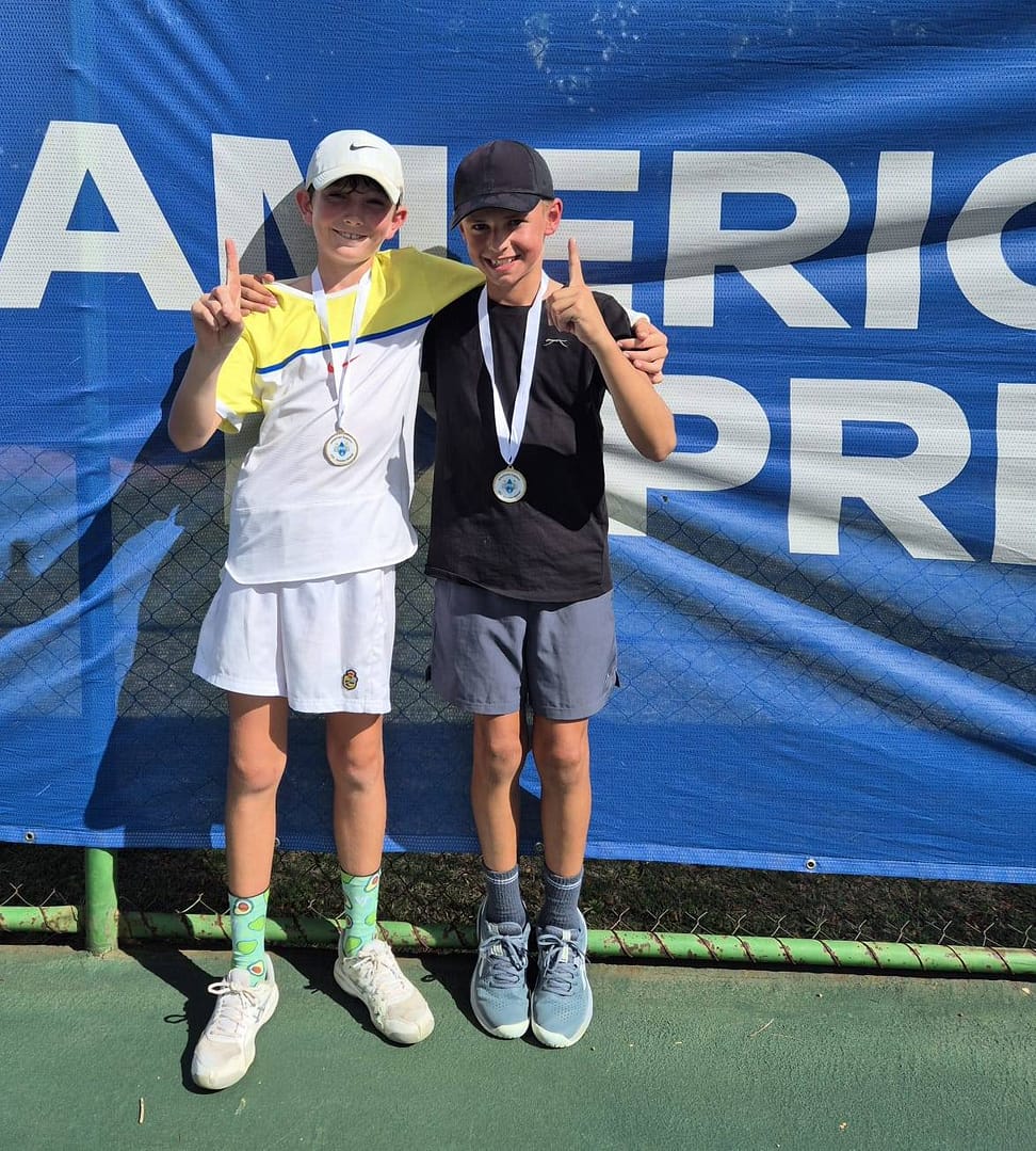 Laerskool George-Suid is ongelooflik trots op Eben de Bruin! Hy eindig 21ste in enkelspel by die Vrystaat Super 8 en stap weg met goud in dubbelspel! By die SA o.12 Junior Nasionale Kampioenskappe in Bloemfontein eindig hy 42ste in Suid-Afrika. Hy en sy dubbelsmaat het tot in die semi-finaal deurgedring, maar verloor ongelukkig na ’n titaniese marathon-stryd.