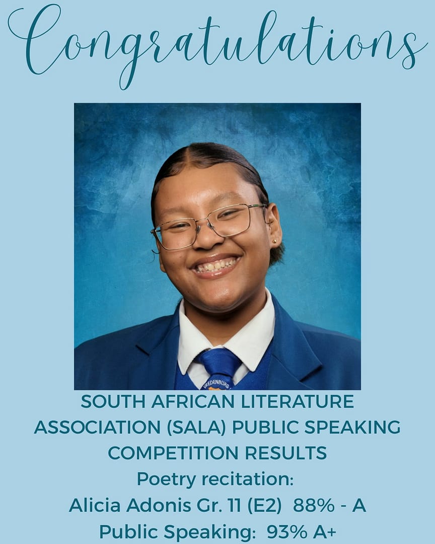 Seven learners from Vredenburg High School proudly participated in the annual South African Literature Association (SALA) Public Speaking Competition. Our talented learners competed across various categories, including reading, poetry recitation, and public speaking. We are incredibly proud of their dedication and performance!